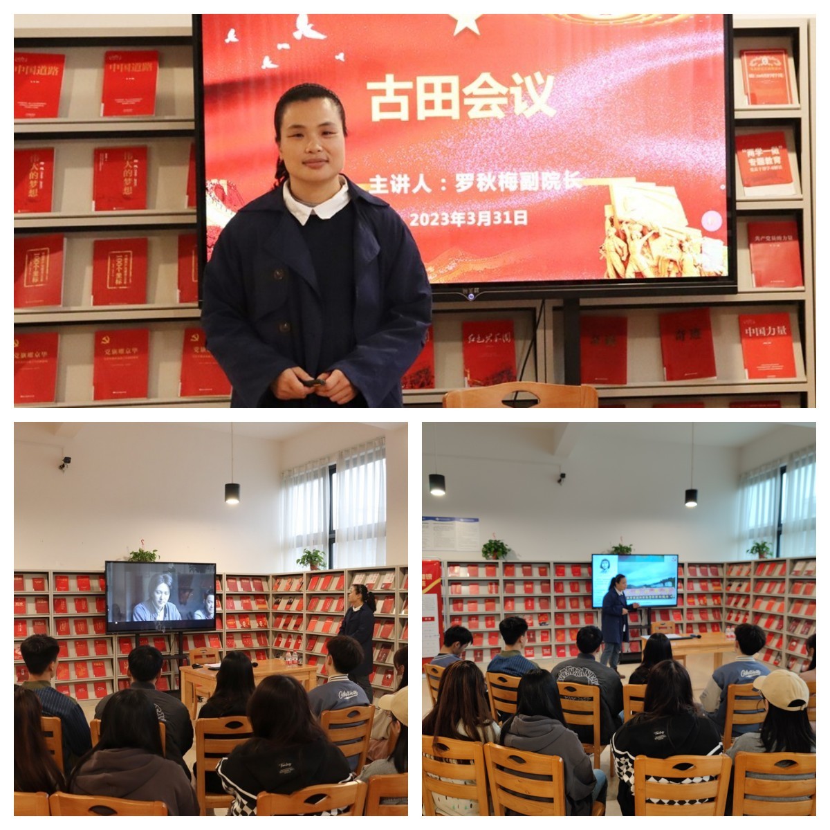 3月31日下午4:30,红色专题知识系列讲座第三场之古田会议在西校区图书馆三楼开讲,由马克思主义学院副院长罗秋梅主讲。(张家梅摄)