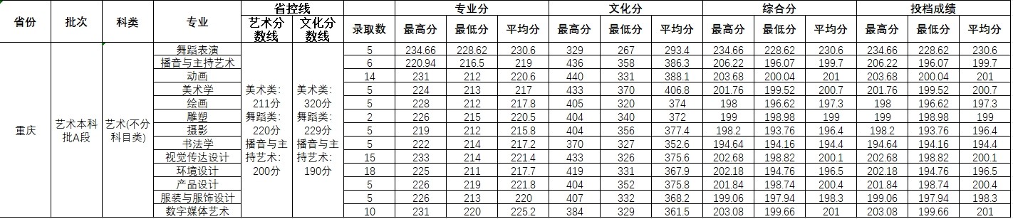 2023年重庆 艺术类录取情况