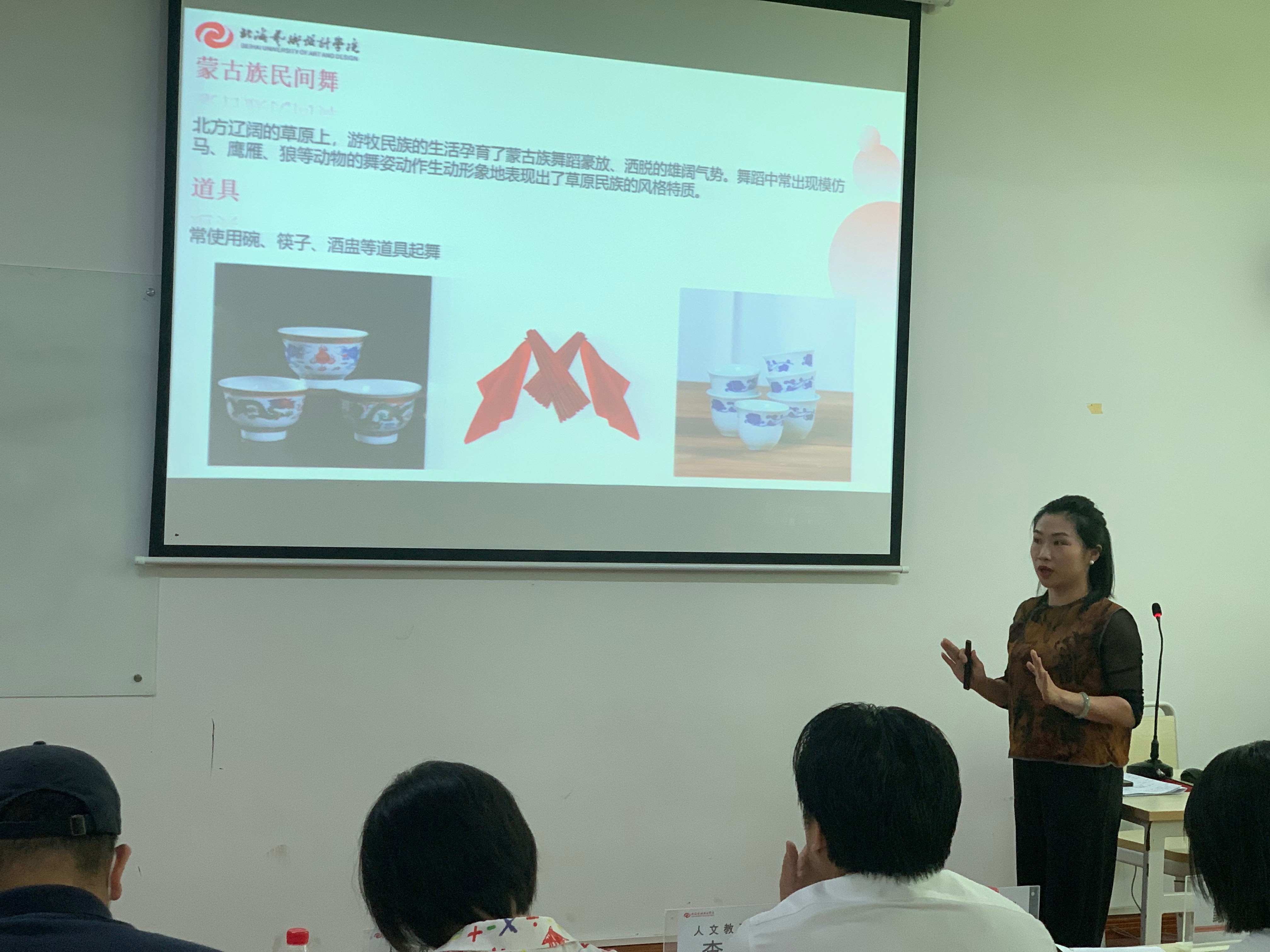 二号选手翁梦蕾老师上了一堂精彩的多舞种教学课,讲解了蒙古族舞蹈基训《如何正确使用肌肉发力方法》。翁老师通过规范的舞蹈动作、专业的舞蹈术语细致地讲解蒙古族的民族文化与民族风情,强调每一个动作的准确性,让同学们感受肌肉发力和延伸的过程。