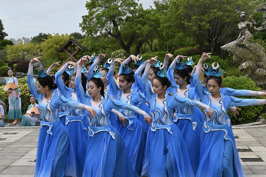 舞蹈表演的学生们