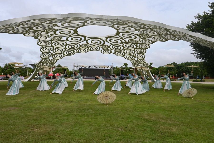 山河锦绣,盛世芳华。为欢度国庆佳节,喜迎新中国成立73周年加强舞蹈表演专业学生艺术实践能力,推进产教融合,2022年10月1日至7日,人文教育学院舞蹈表演专业学生分批前往北海市园博园开展专业实践活动。此次活动共有300名师生参与。