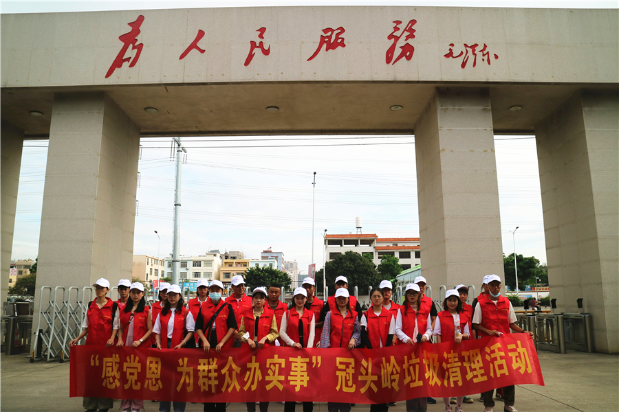 为深入推进党史学习教育,切实把学习成效转化为工作动力和实实在在成果,发挥学生干部及退伍学生的模范带头作用,2021年6月12日上午,学工部(处)与校征兵工作站联合组织学生干部及部分退伍复学学生开展“感党恩• 为群众办实事”冠头岭垃圾清理志愿服务活动。