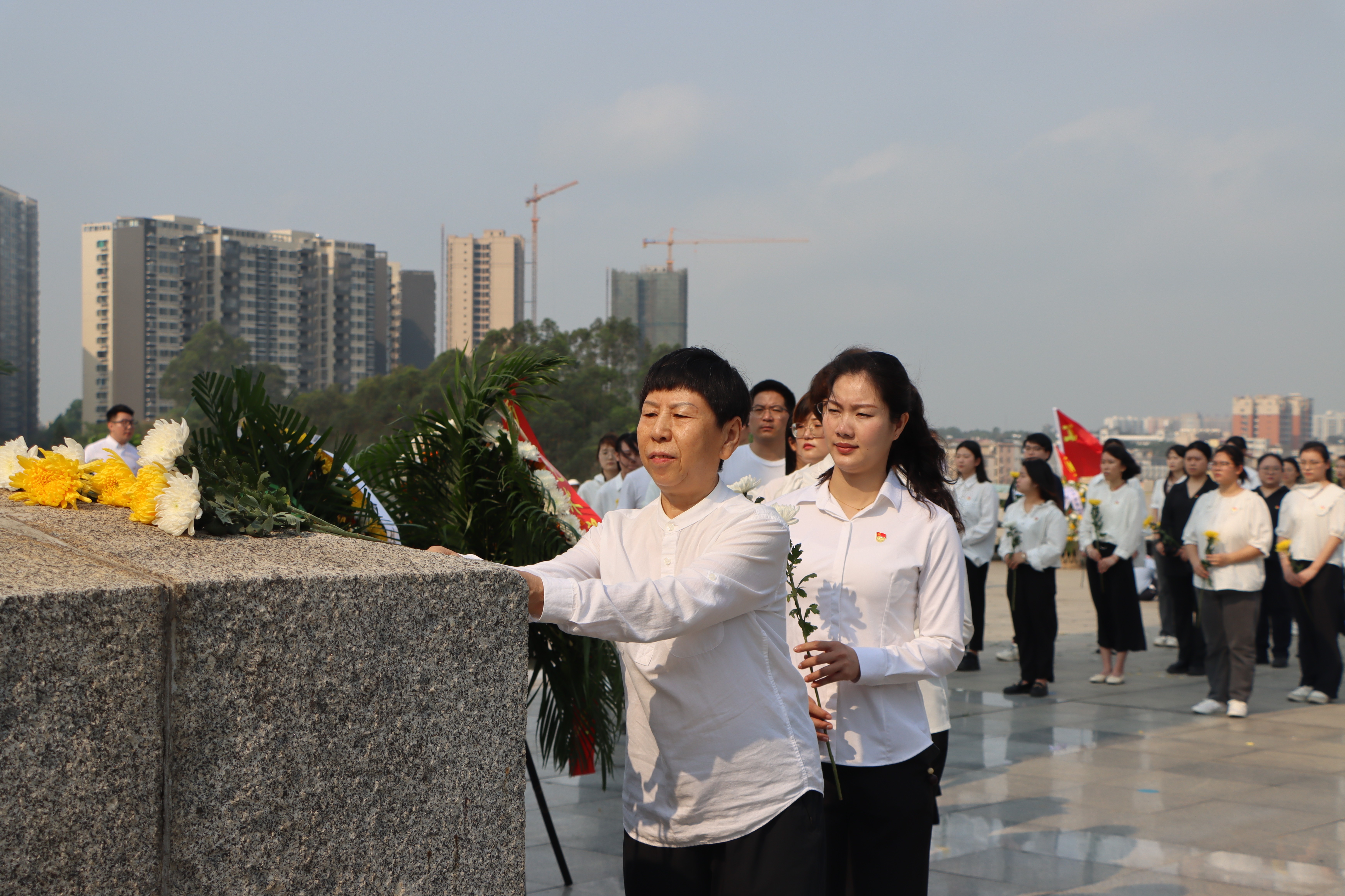 瞻仰烈士纪念碑,敬献手持花