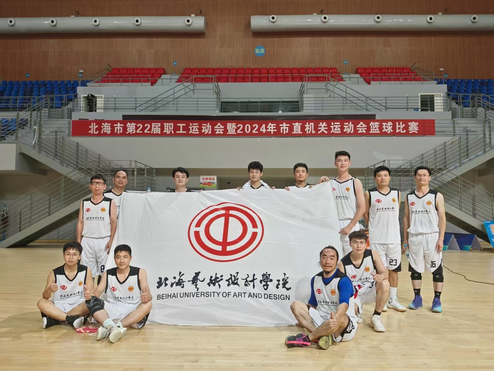 近日,校工会报名参加了由北海市总工会举办“凝心铸魂跟党走 民族团结谱新篇”北海市第22届职工运动会暨2024年市直属机关运动会男子篮球比赛,我校男子教职工篮球队在赛场上敢打敢拼,迎难而上,取得了8强的好成绩。本次报名参赛运动员共16人,均为我校教职工工会会员。