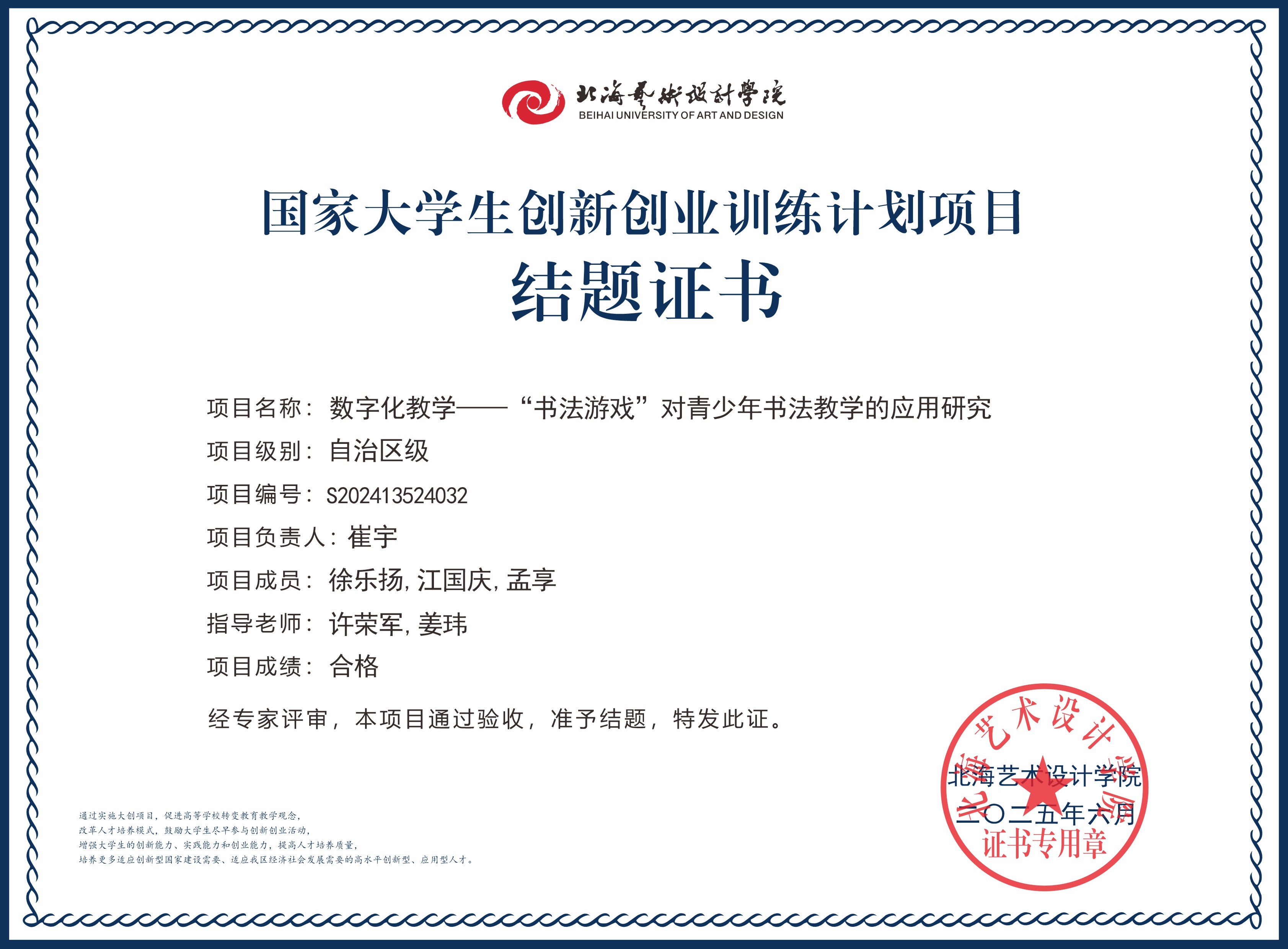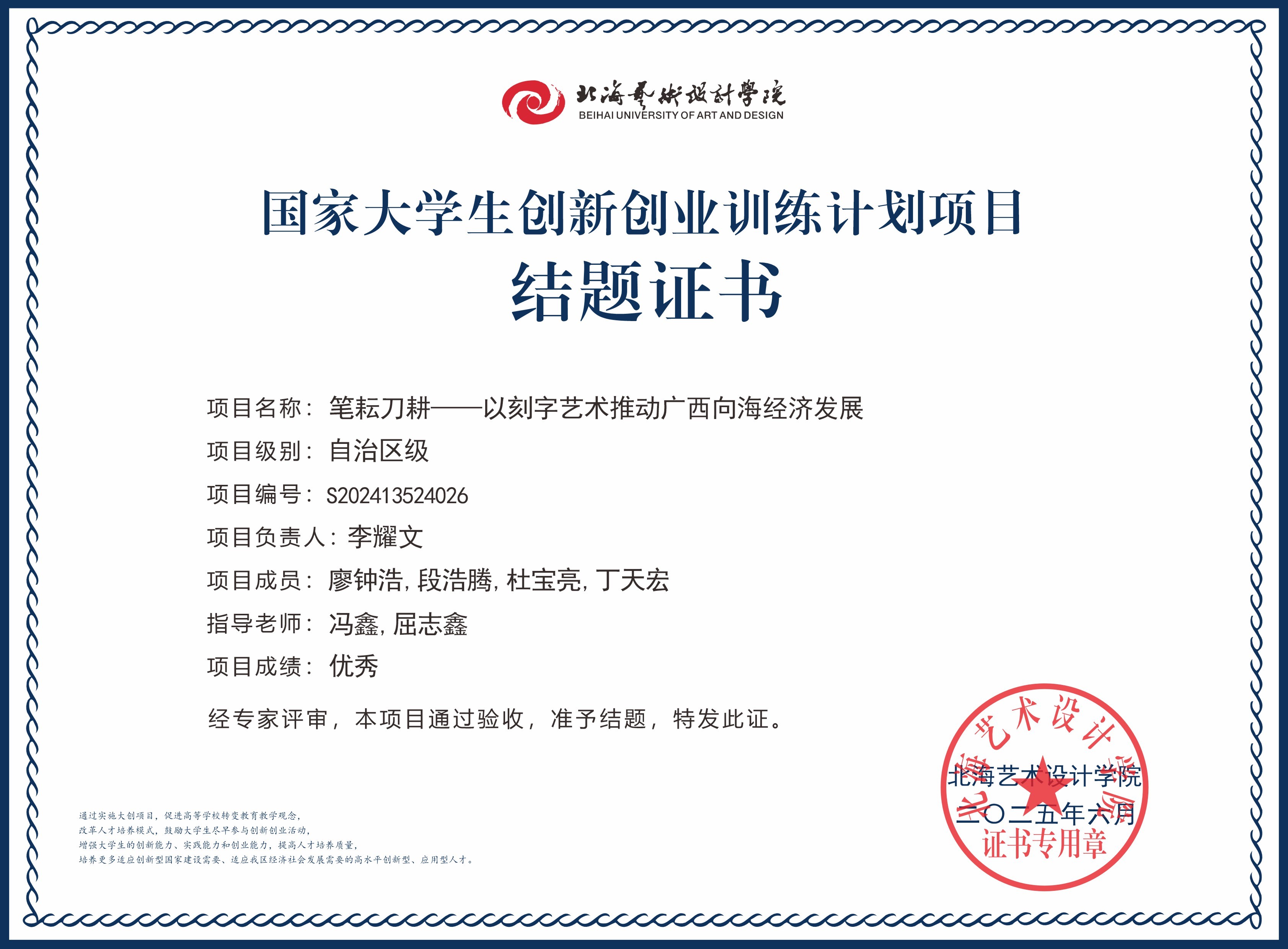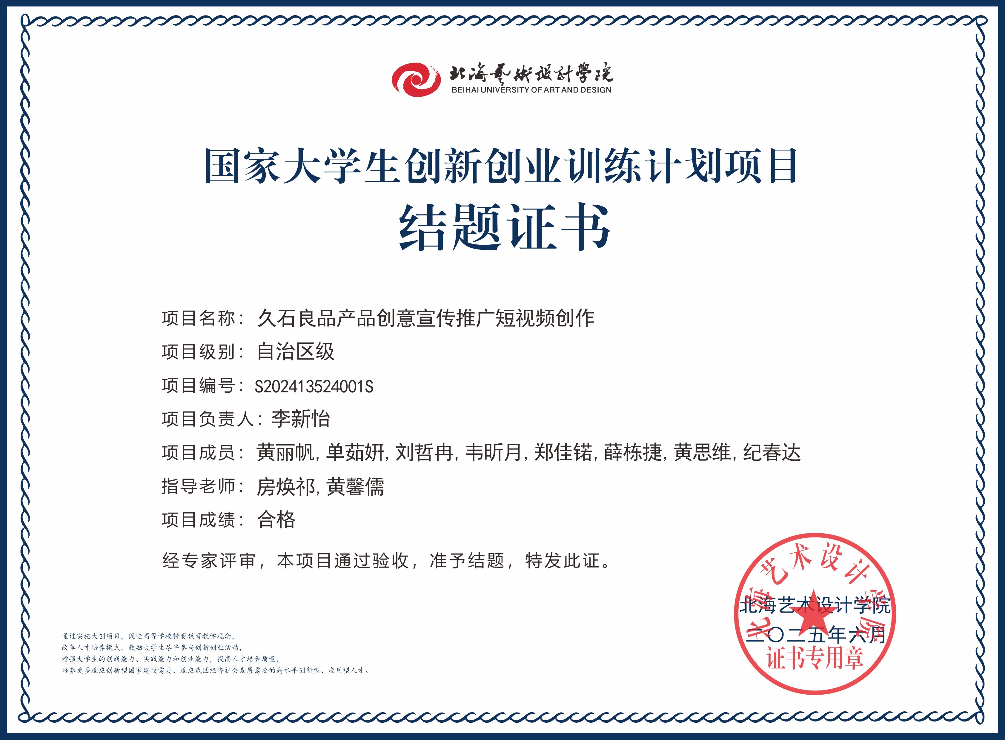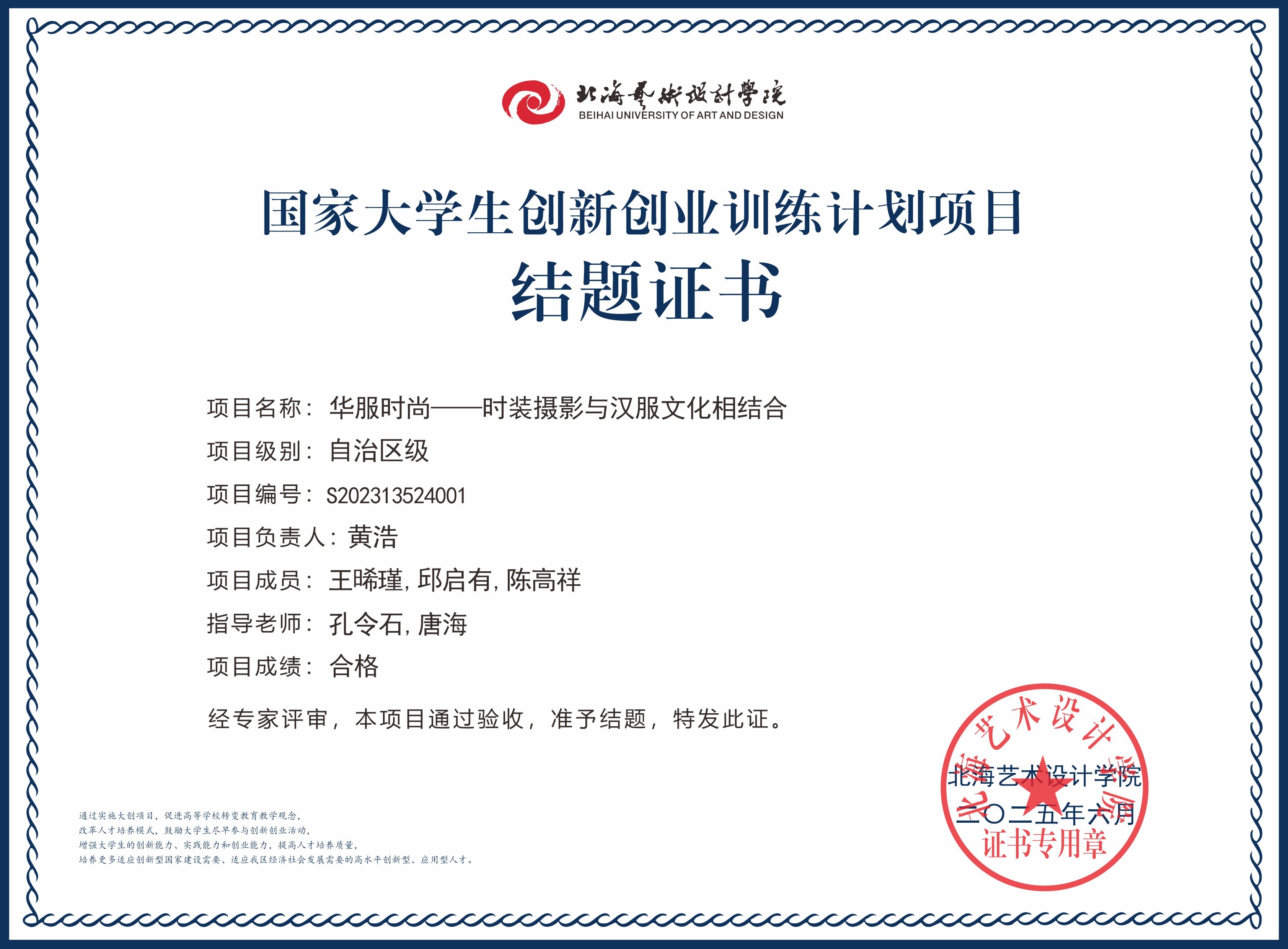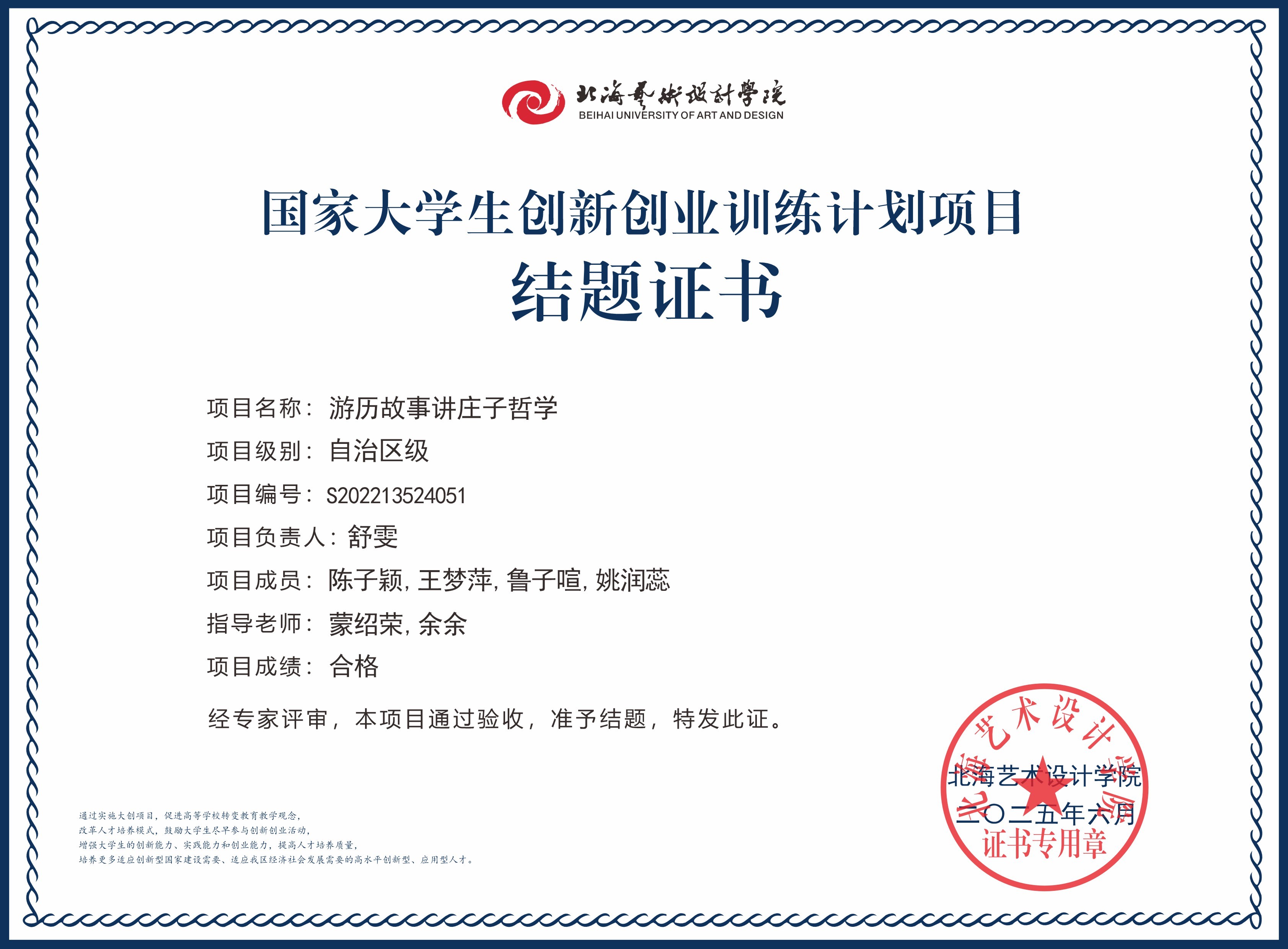 2025年大创项目结题证书(国家级区级)