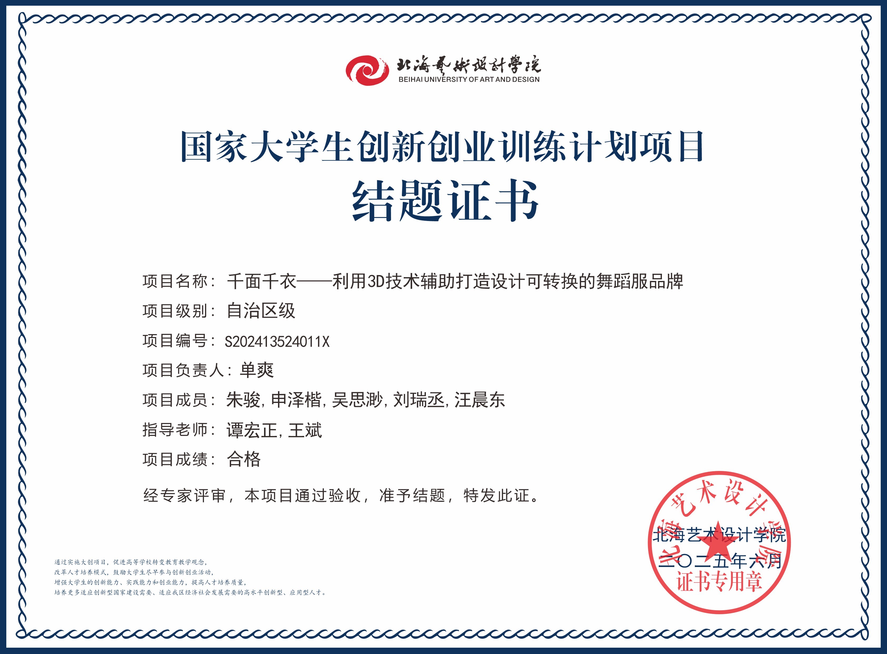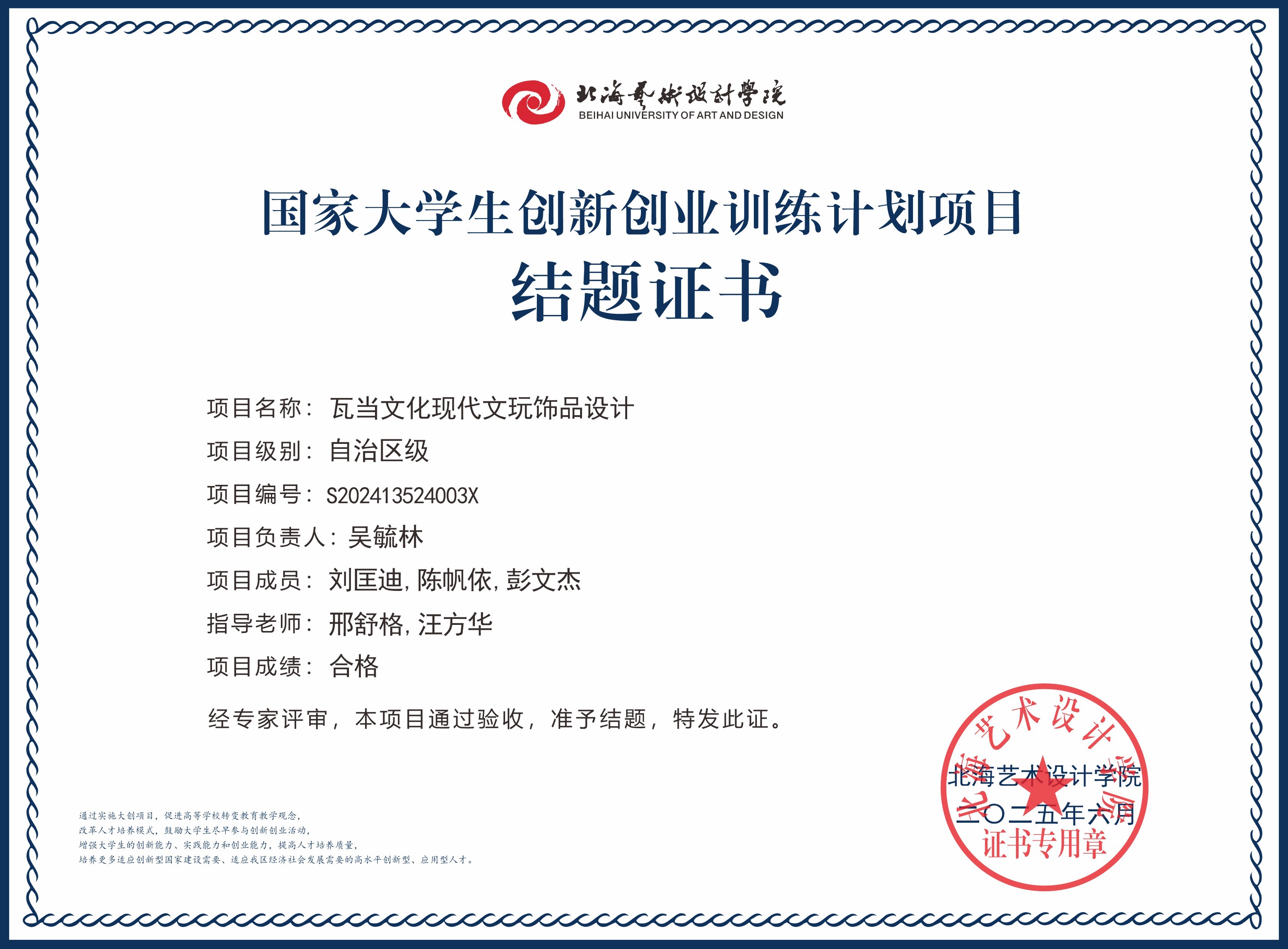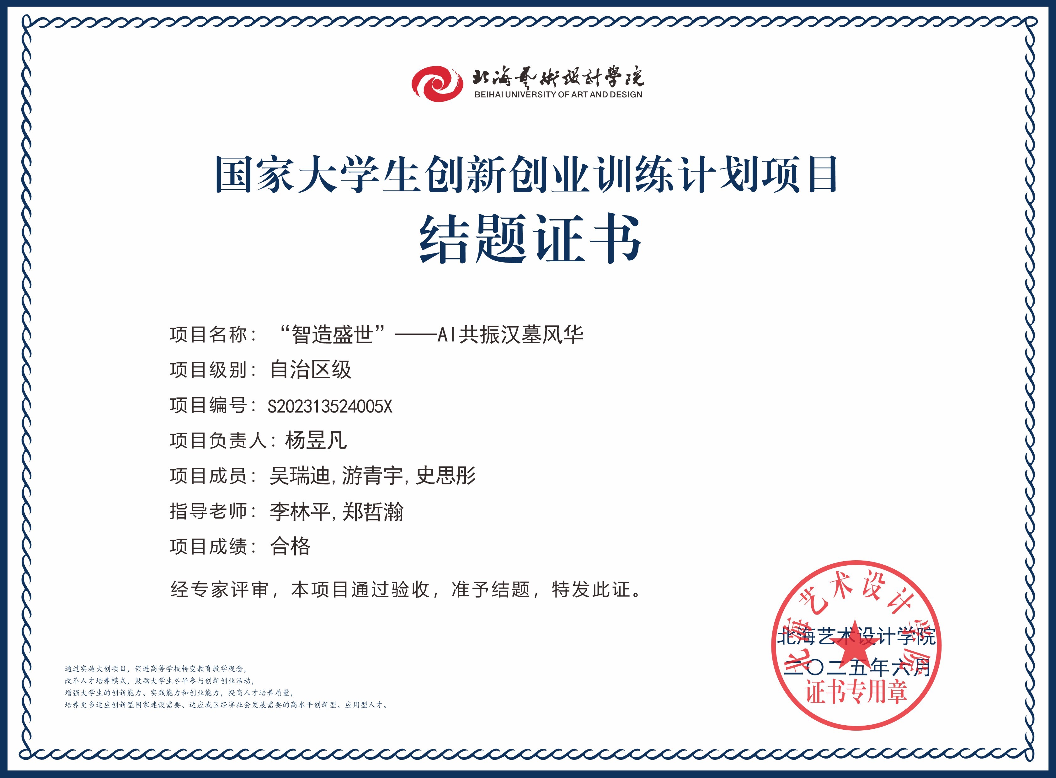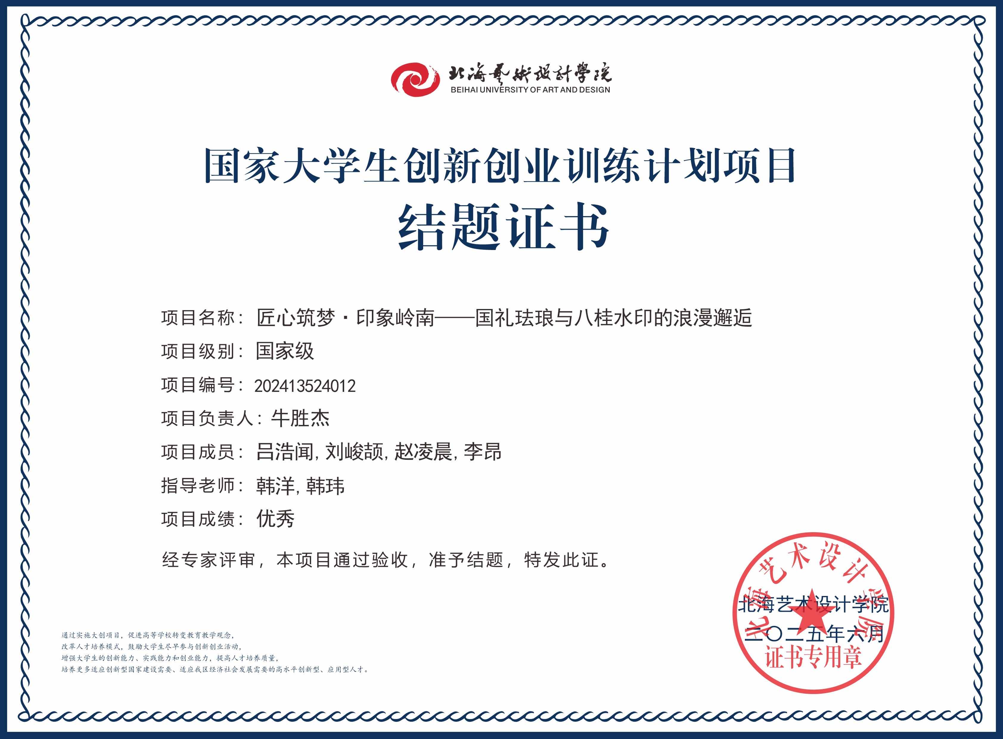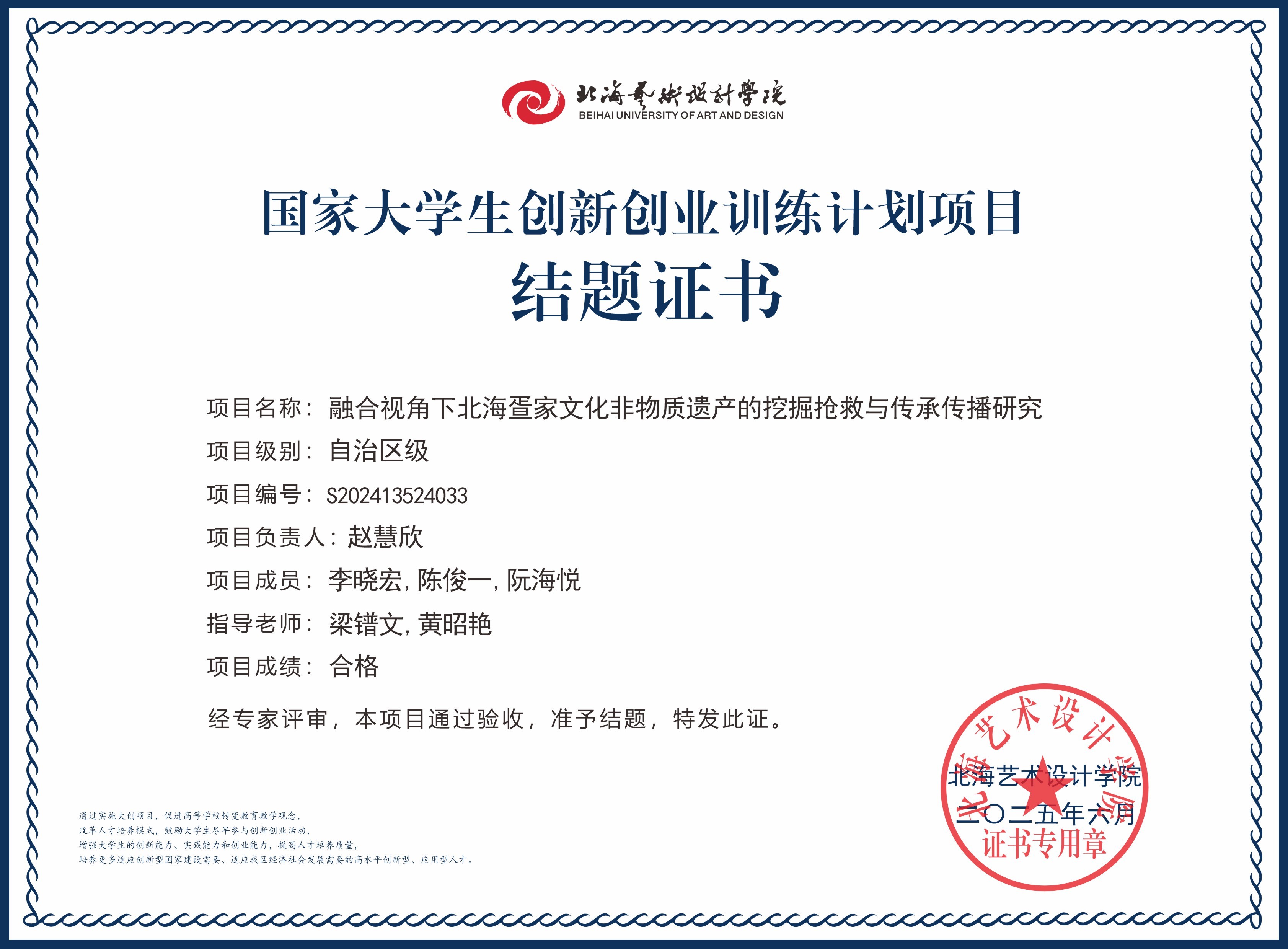 2025年大创项目结题证书(国家级区级)