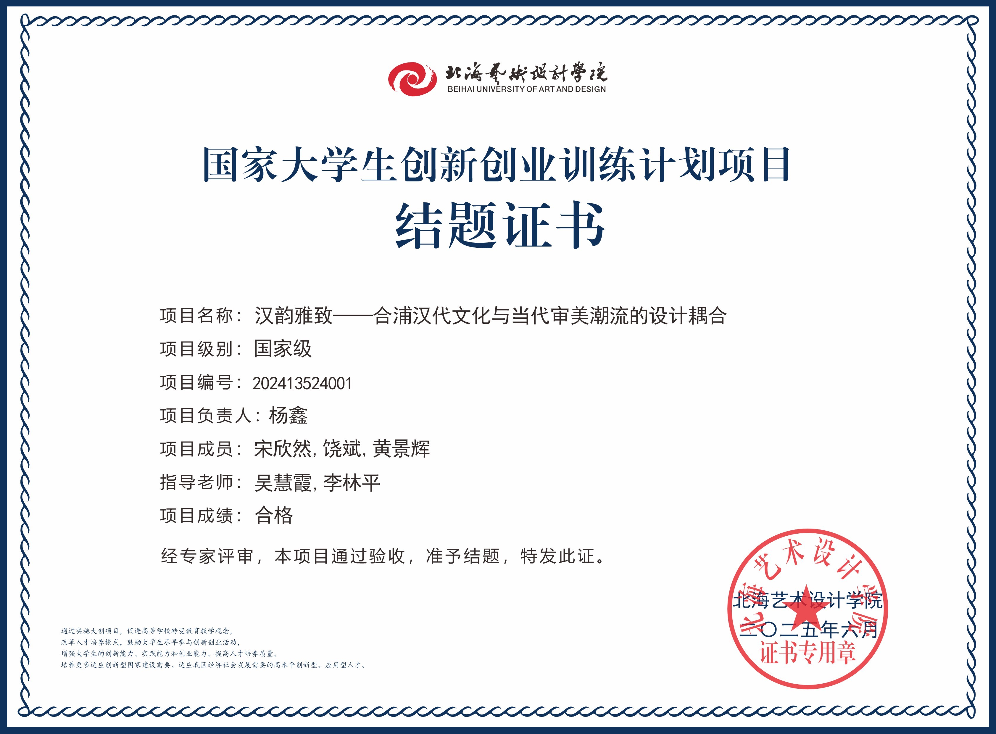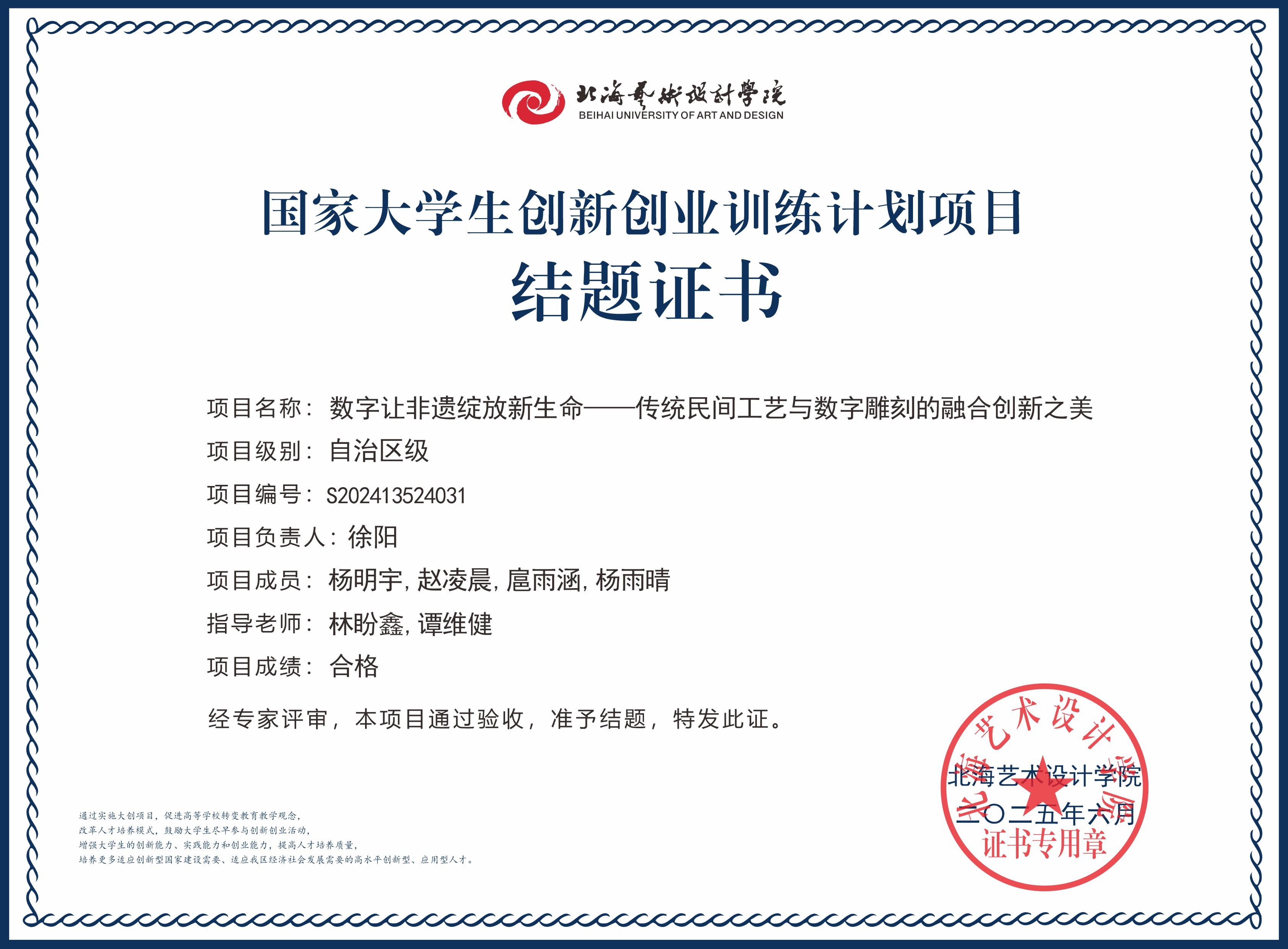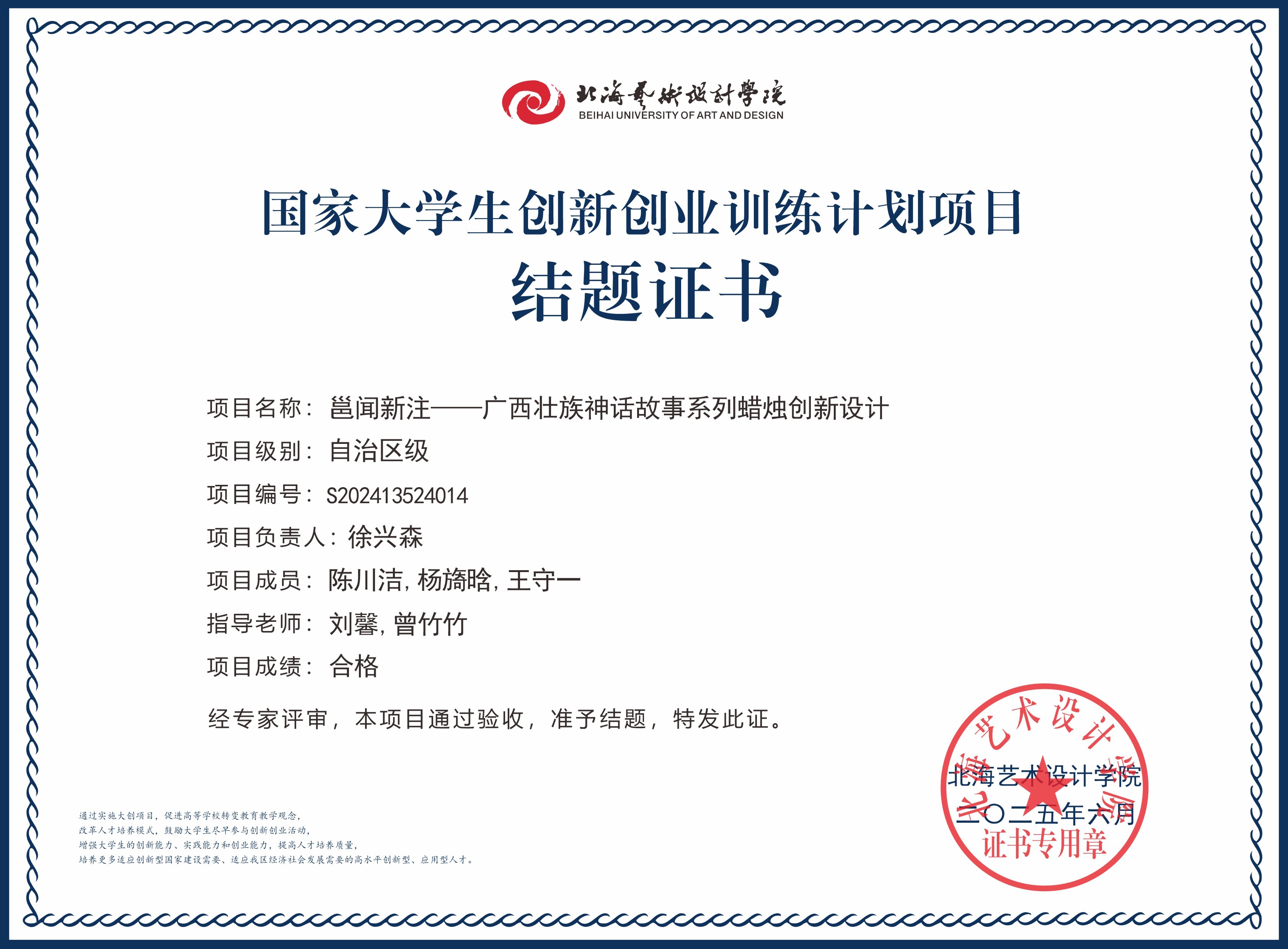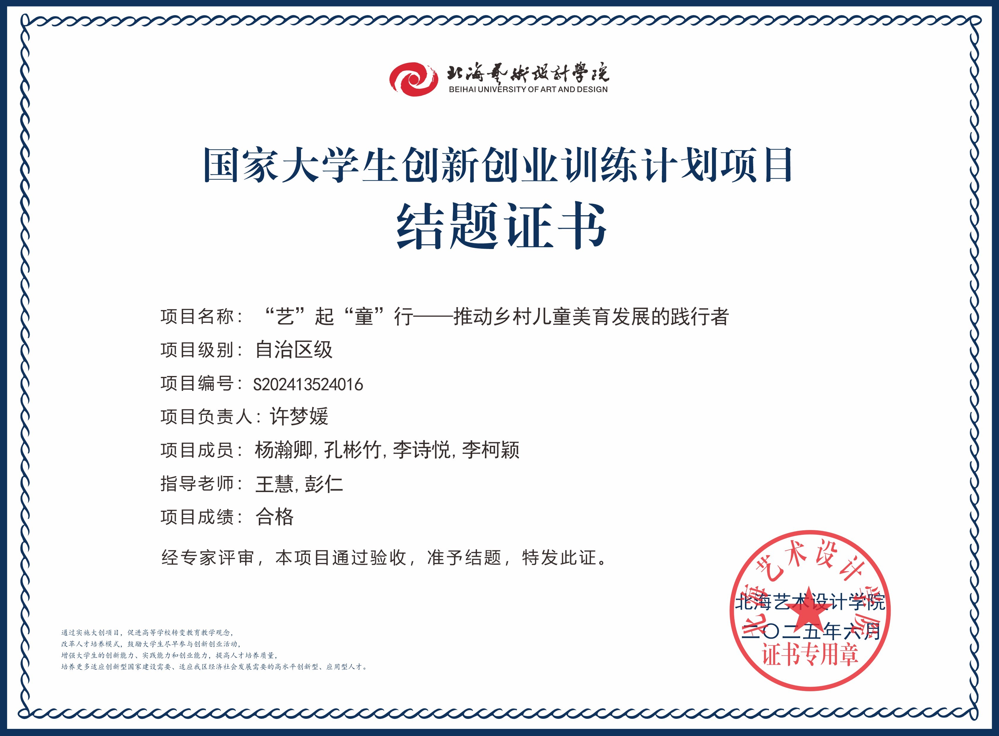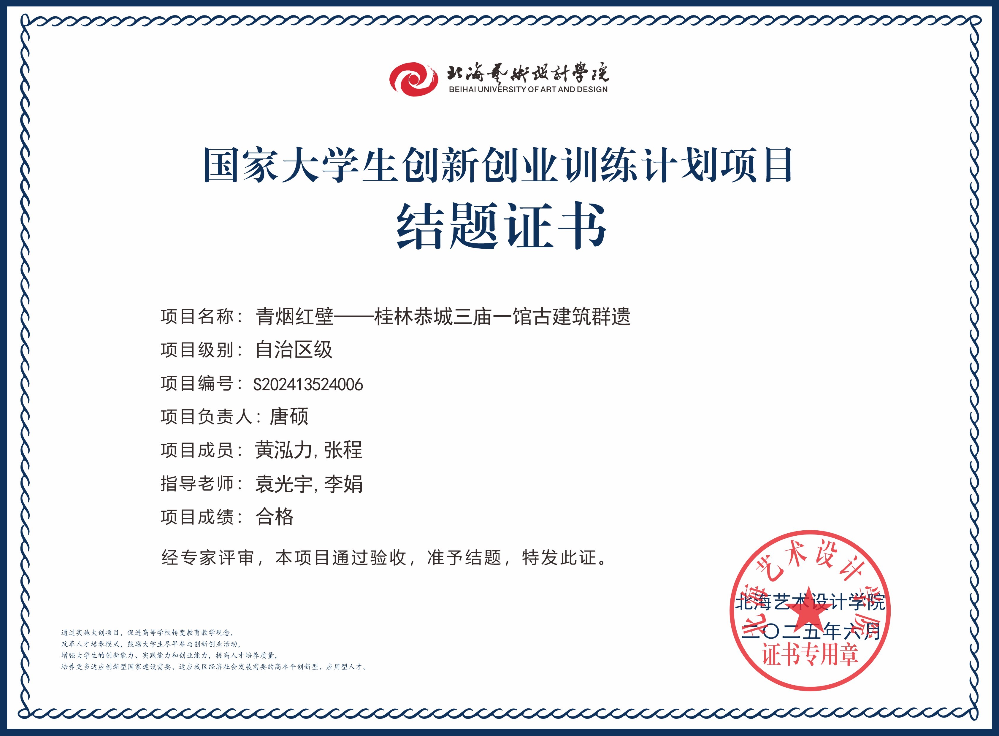 2025年大创项目结题证书(国家级区级)