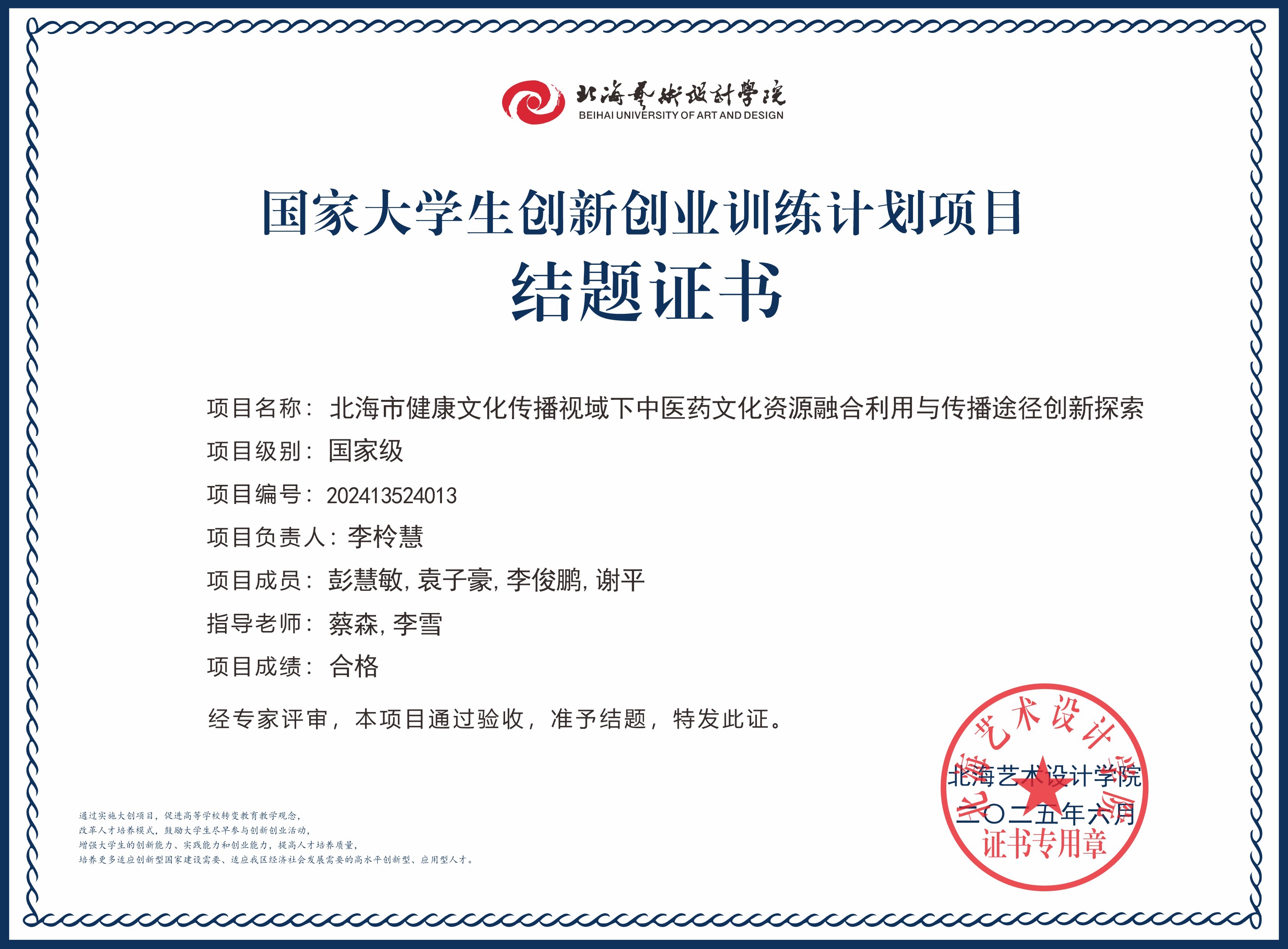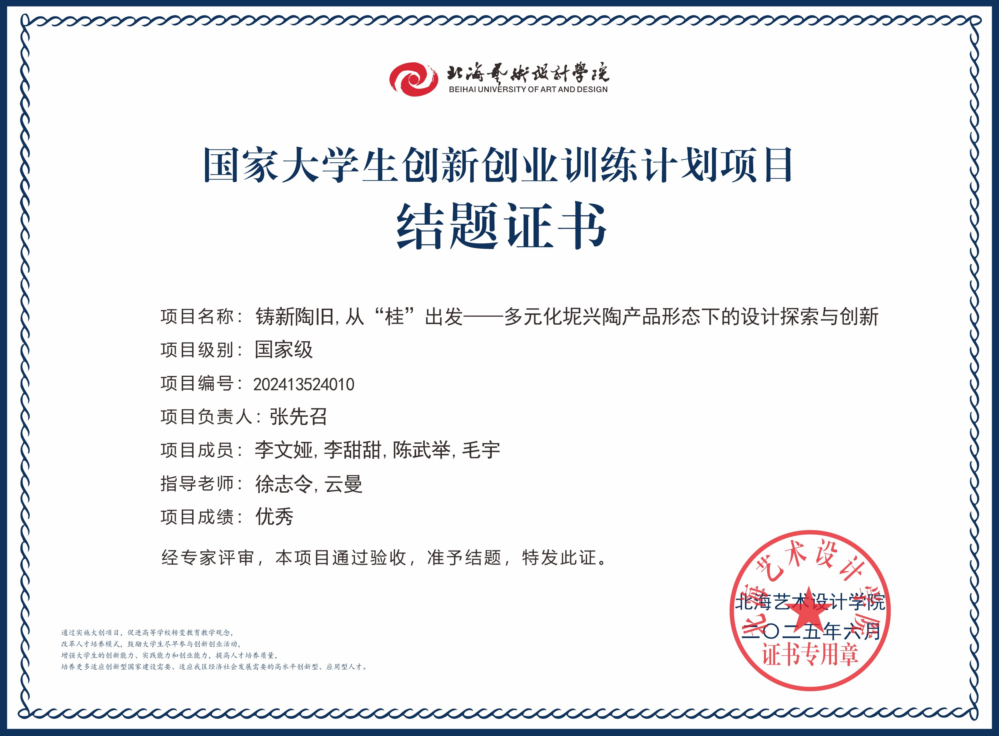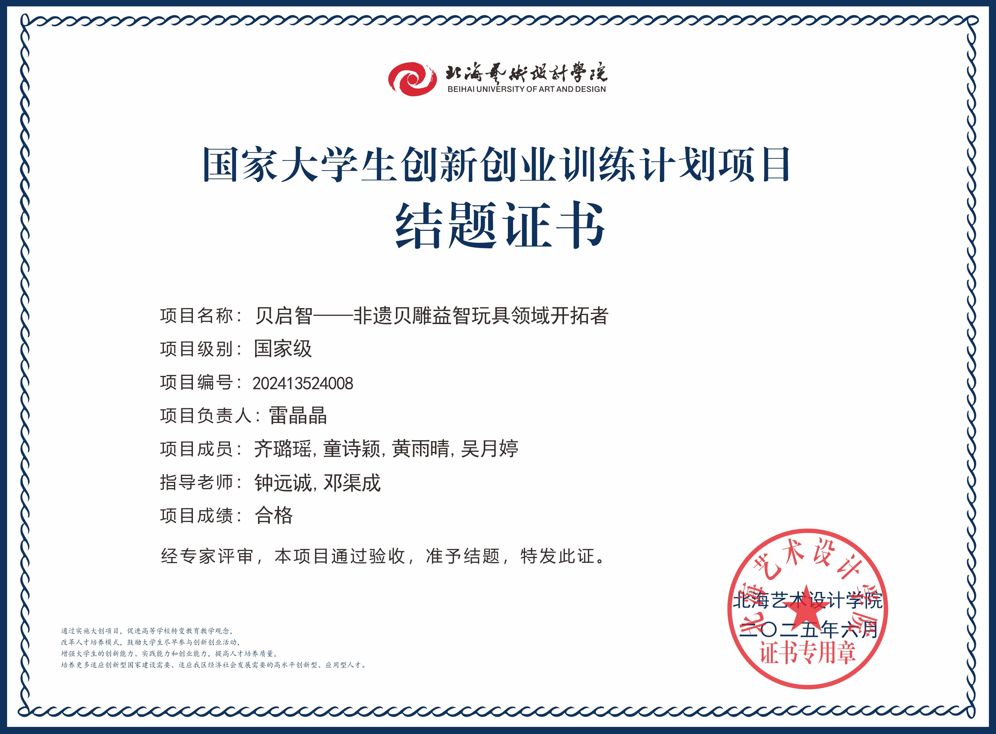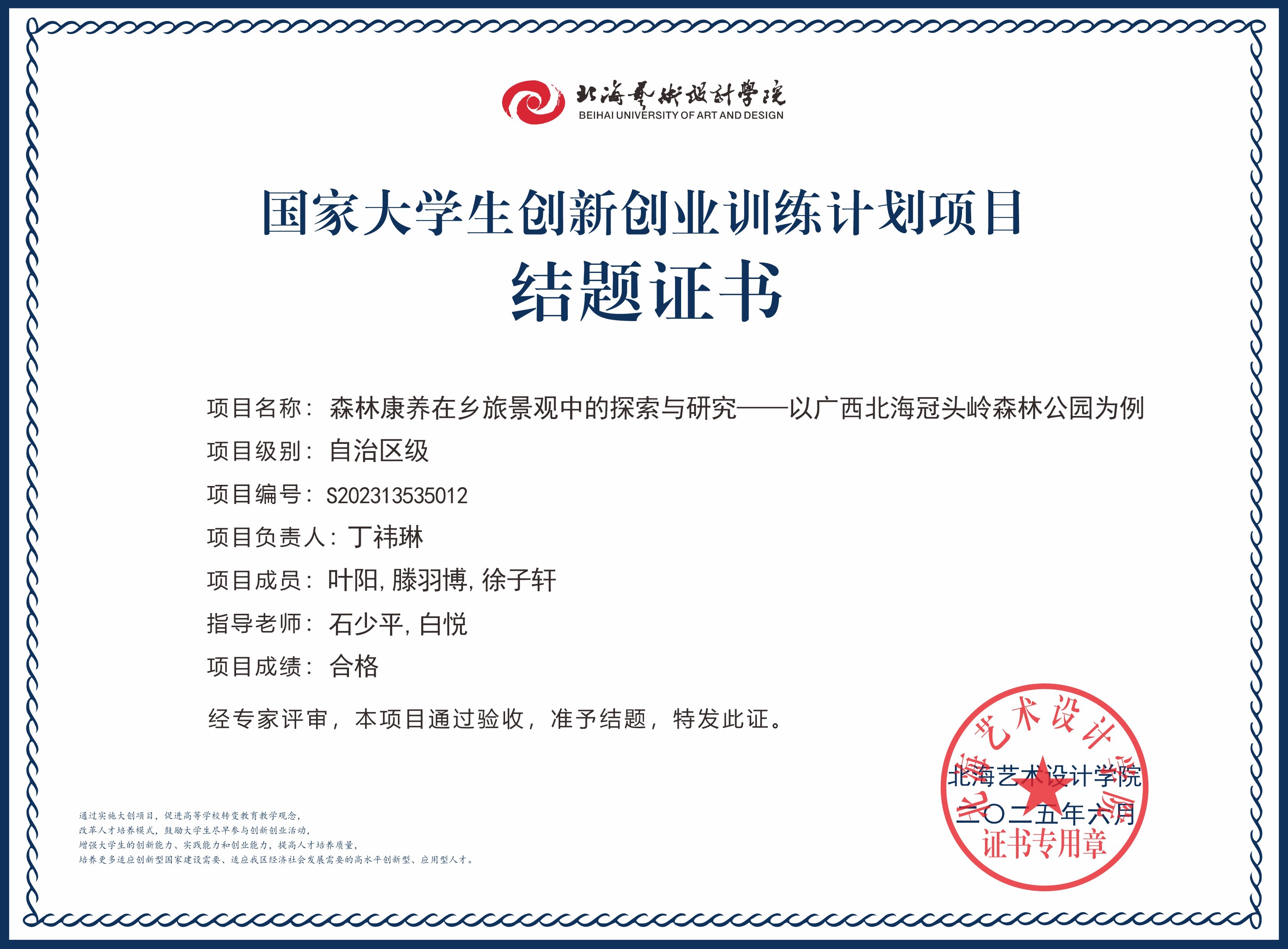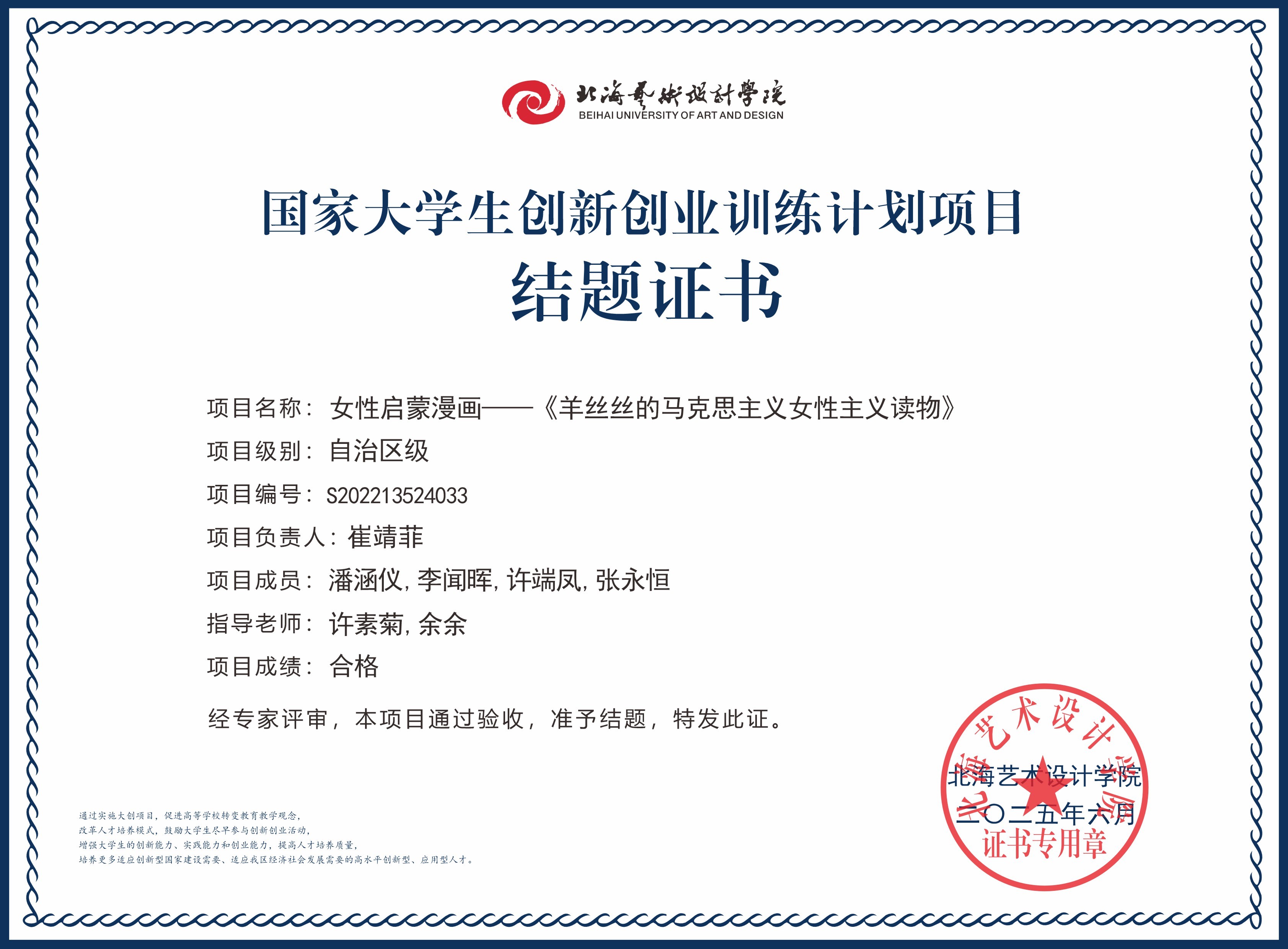 2025年大创项目结题证书(国家级区级)