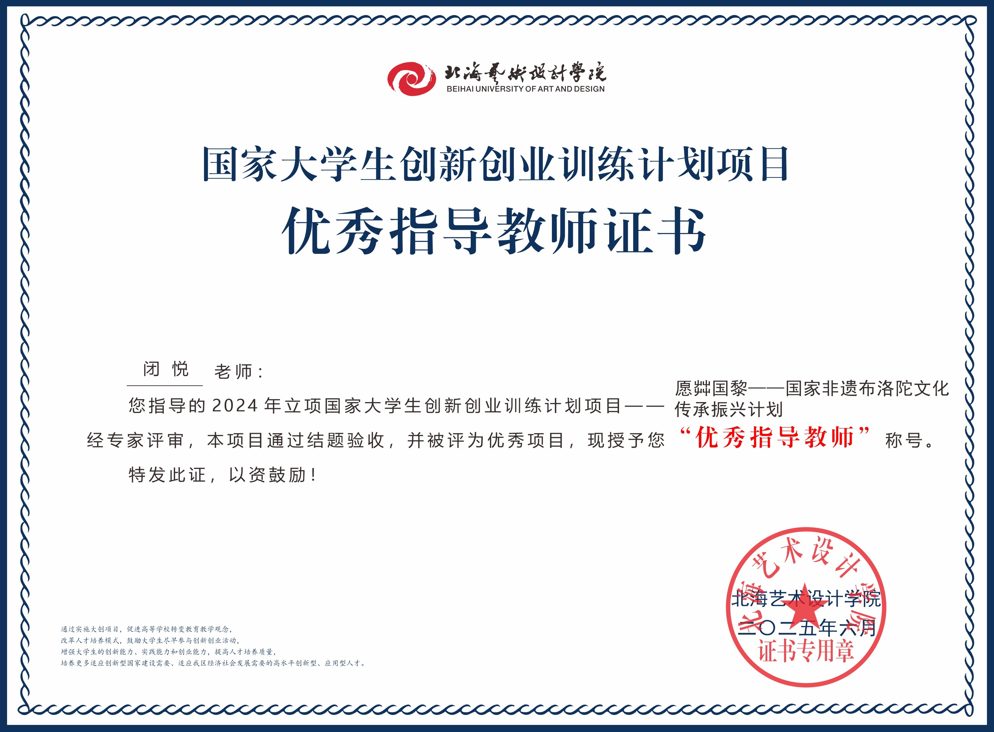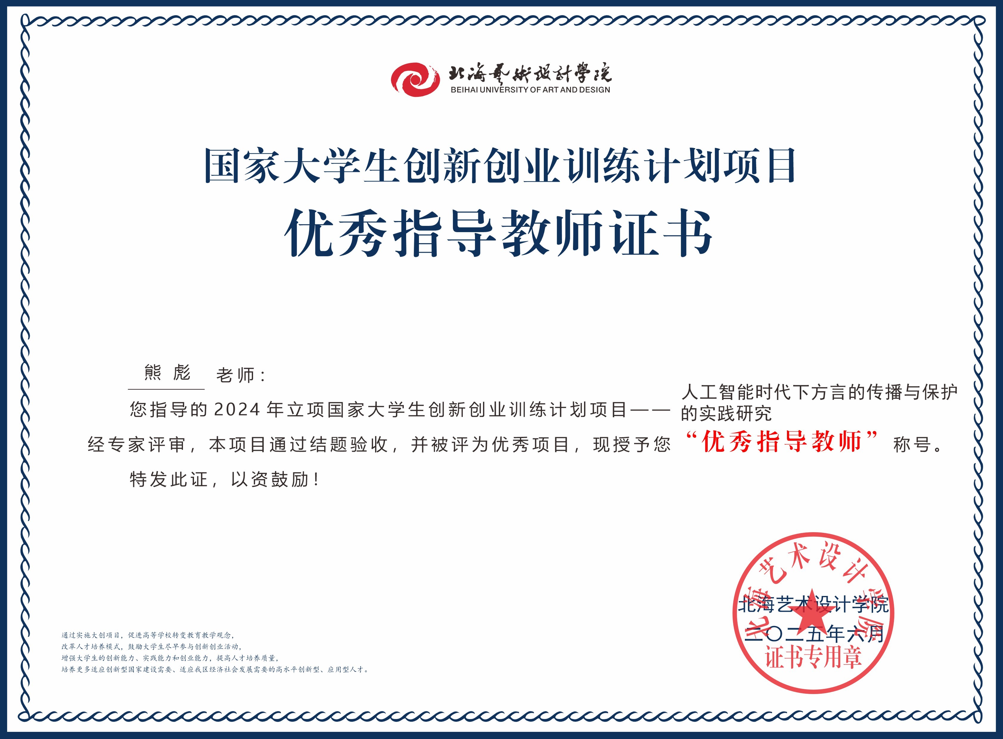 2025年大创项目优秀指导教师