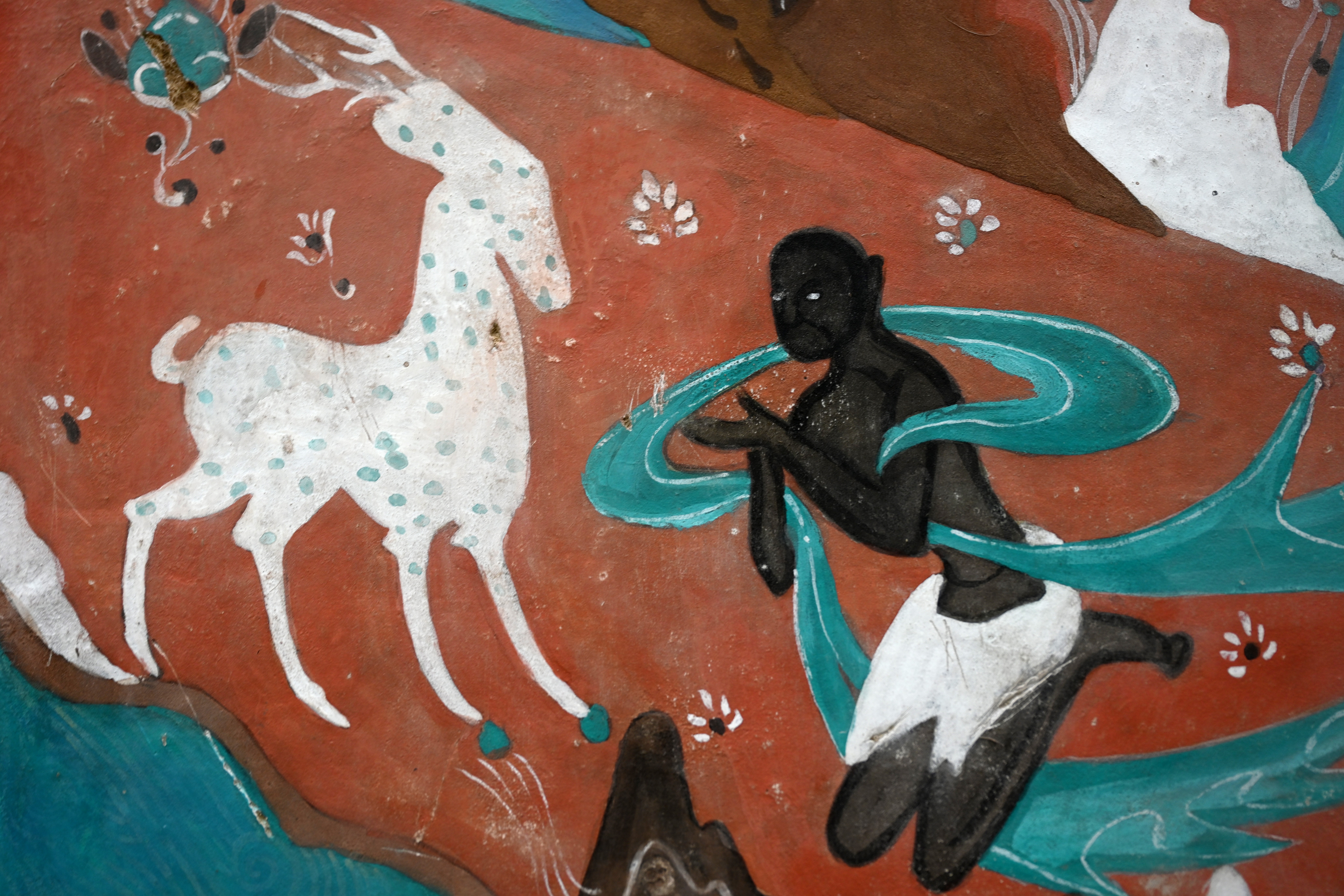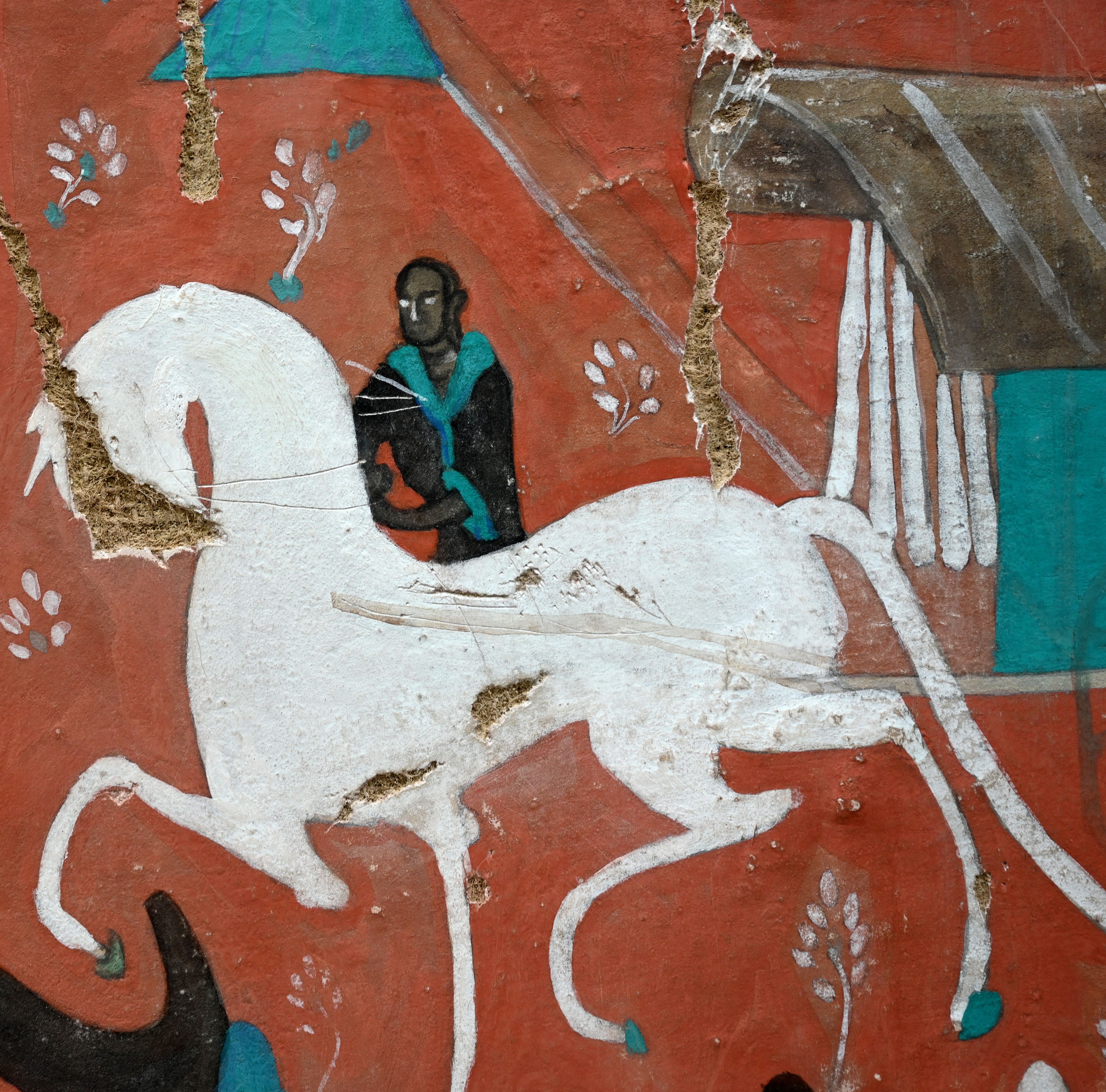 4.做旧:根据壁画现状,采用刮、刻、打磨等不同方法进行做旧。