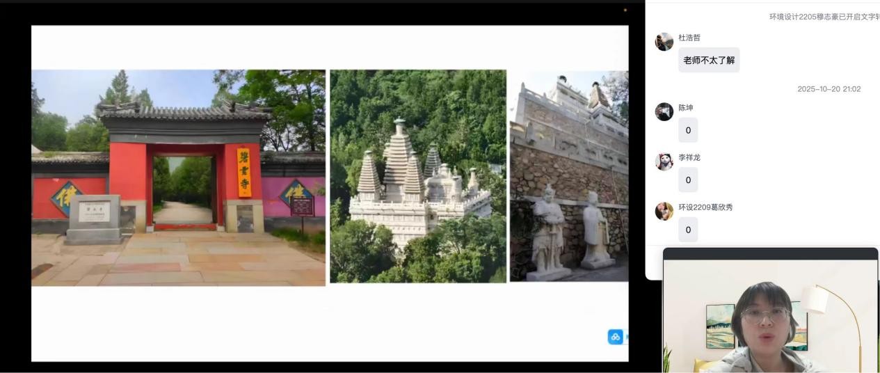 为避免实地考察陷入“只观其表、不解其理”的困境,王思涵老师在实践前开展90分钟“香山考察攻略”线上前置教学,为学生搭建系统的理论框架。课程以清代“三山五园”历史脉络为切入点,重点梳理静宜园“内垣、外垣、别垣”的环套式空间格局;结合具体案例深入解析——从勤政殿“面水依山”的传统风水布局,到致远斋汉白玉石桥的形制特征,再到碧云寺“危桥跨涧”所体现的宗教建筑群轴线组织逻辑,层层递进地帮助学生建立“历史沿革—空间结构—建筑特色”的三维认知,为后续实地调研做好充分理论铺垫。
