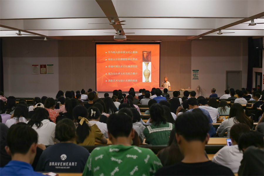 讲座开始,李正安教授通过展现中外、古今不同的陶瓷艺术作品,向我们说明了陶瓷作为悠久的中国文化载体,宛如无形的博物馆和世界语,传递了中国历史文化的演进信息,推进了全世界文化的交流与发展,更使无数的艺术家、设计师获得了艺术与设计创作的灵感。