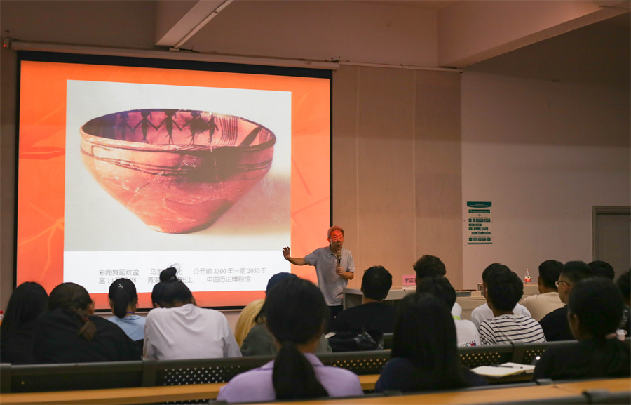 紧接着,李教授通过展现部分早期人类陶器作品后表示,同是造物,陶器的技艺含量超越此前同期的其它物品,其出现是文明的“里程碑式演进”。它体现了人的思维能力的变化,心智的升华。
