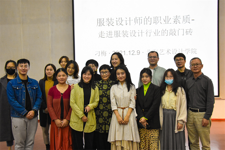 2021年12月9日晚7点30于我校西校区伦理楼107,中国十大皮装设计师刁梅教授为我校师生带来了一场题为《服装设计师的职业素养》的精彩讲座,本次讲座由我校副校长王斌主持。