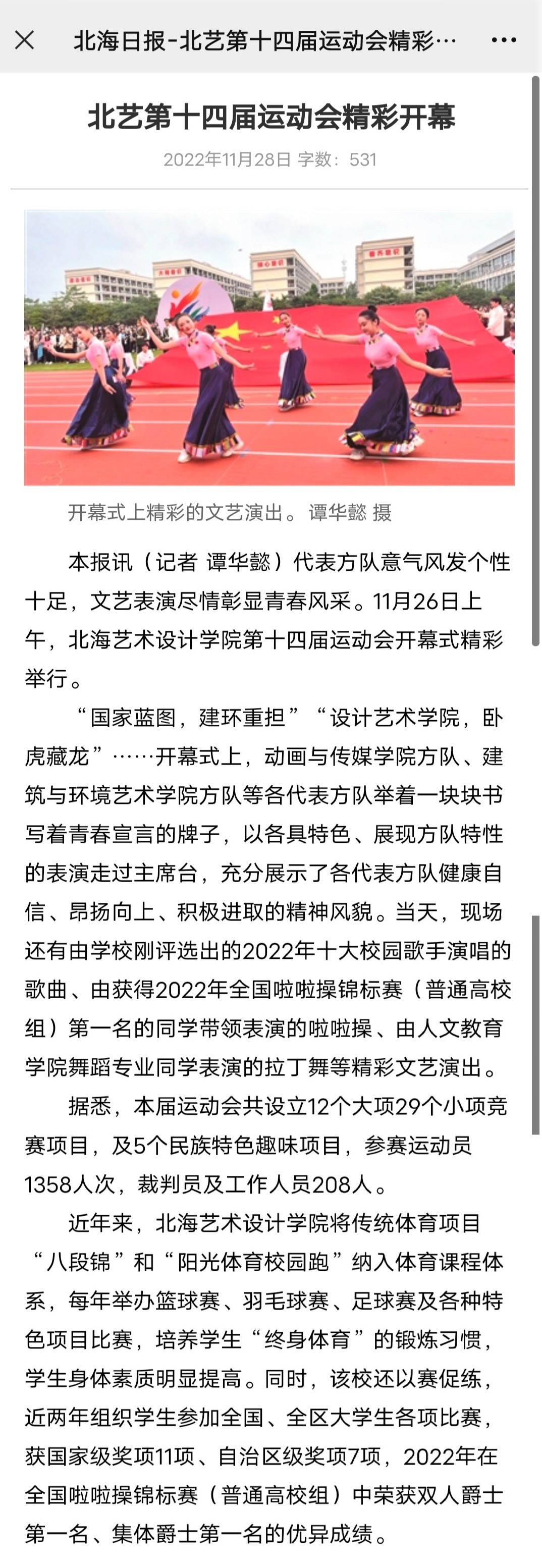 北海日报:北艺第十四届运动会精彩开幕