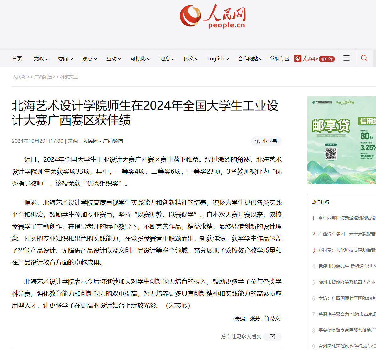 人民网:北海艺术设计学院师生在2024年全国大学生工业设计大赛广西赛区获佳绩
