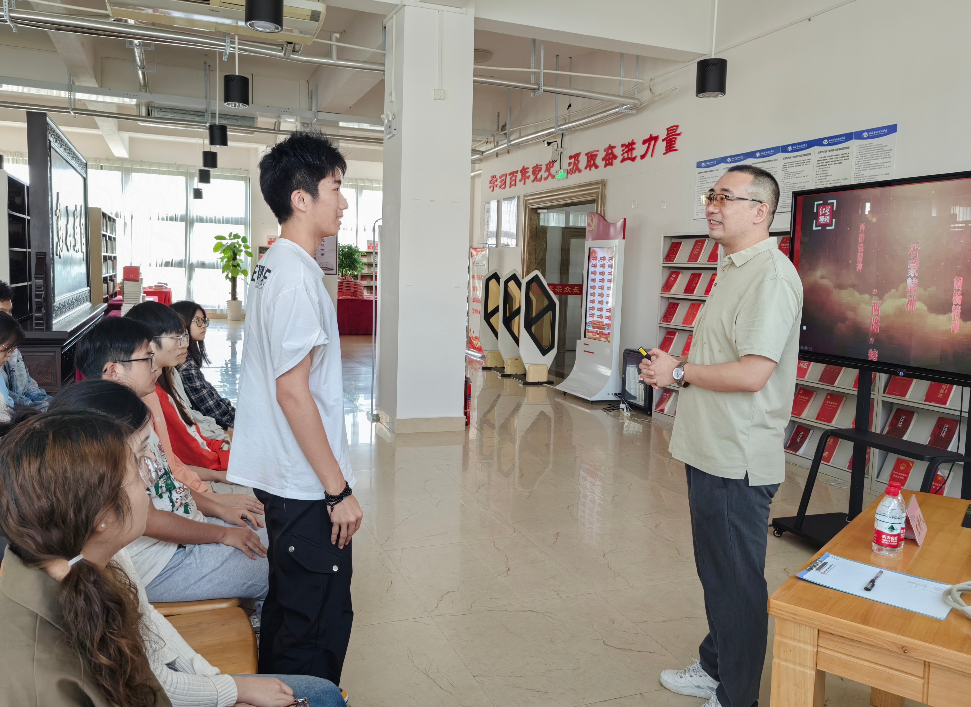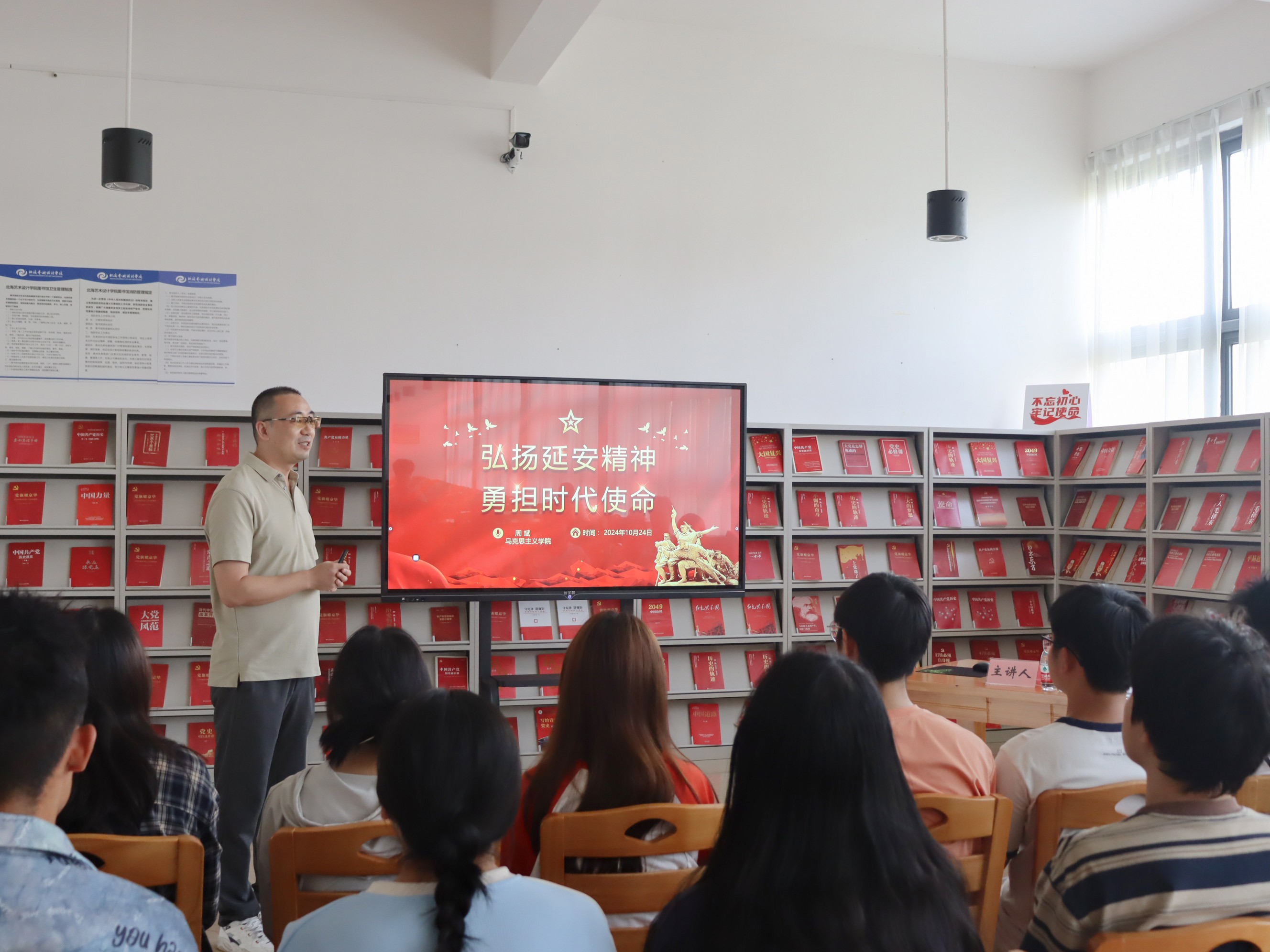 10月24日下午15:00,红色专题知识系列讲座第四场在图书馆三楼“红色阅读角”成功举办,由马克思主义学院周斌老师主讲。