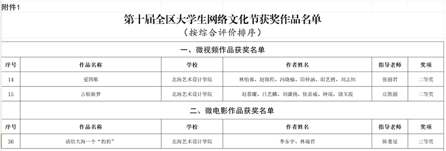 近日,自治区教育厅、自治区党委网信办公布了第十届全区大学生网络文化节和2024年全区高校网络教育优秀作品推选展示活动获奖名单,我校共有8项作品获奖,其中动画短片作品一等奖1项,二等奖1项;优秀新媒体作品一等奖1项,三等奖1项;微视频作品二等奖2项;微电影作品三等奖1项;音频作品三等奖1项。