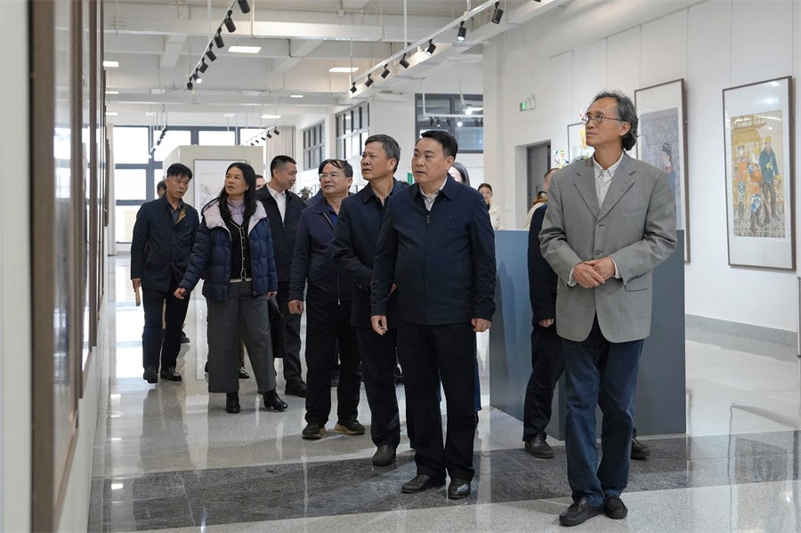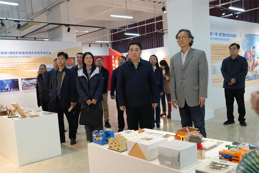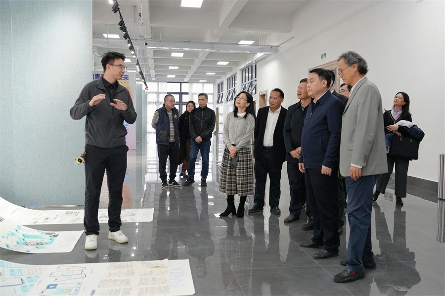 调研组一行全面了解了学校建设的现状和困难,对我校各方面的工作、建设成就以及下一步发展计划表示肯定,并提出了宝贵意见建议。会前,调研组一行先后参观了我校教学综合改革成果展、服务地方经济发展、石碑书法艺术文化景观长廊和学生作品展,观摩舞蹈学院、美术学院教学,观看了学校宣传片。(周小琪/摄)