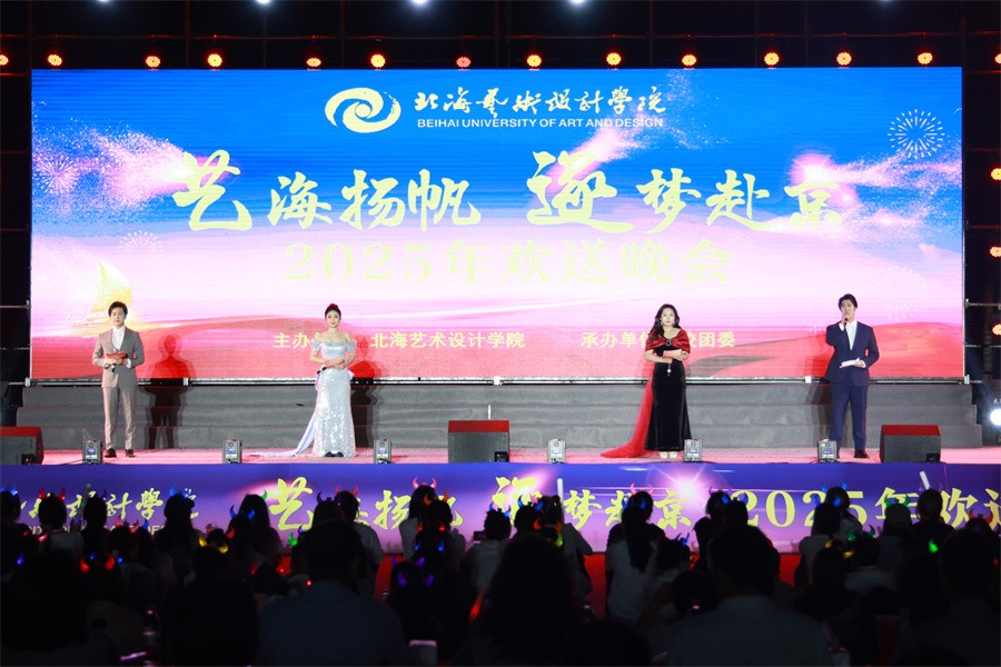 逐梦六月息,扶摇上青云。5月29日晚,我校于西校区操场为即将赴京的2022级学子举办了主题为“艺海扬帆,逐梦赴京”的2025年欢送晚会。学校党委书记覃宪儒,常务副校长胡胜,党委副书记陈毅华、彭仁,副校长陶立阳、黄侃明、包建明,总督学王斌及各二级学院领导和各处室负责人出席晚会,与北艺学子们相聚欢宴,其乐融融。