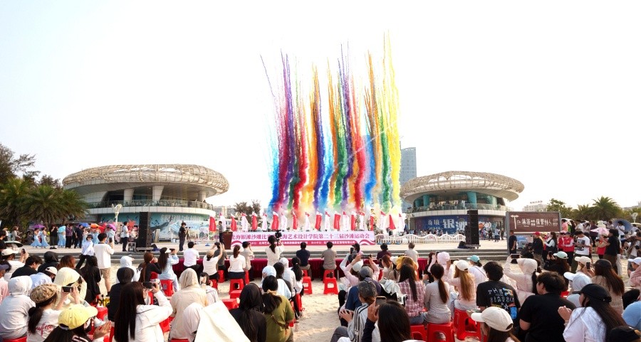 开幕式上,精彩纷呈的文艺表演点燃全场氛围,动感十足的舞蹈踏响青春节拍,悠扬嘹亮的歌声唱响活力年华,与碧海金沙相映成趣。随着党委书记覃宪儒的宣布声落下,彩色烟花绚烂升空,北海银滩沙雕比赛暨北海艺术设计学院第二十三届沙滩运动会正式开幕,相关比赛项目随之进行。