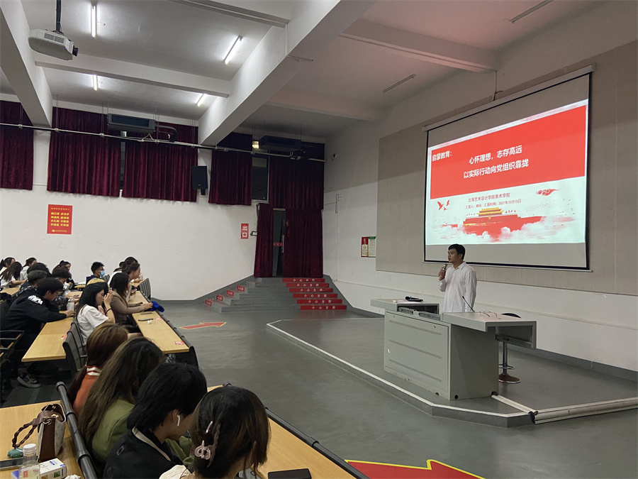 美术学院党总支书记韩玮从端正入党动机、坚定共产主义远大理想、加强政治理论学习三个方面充分解答了当代大学生如何以实际行动争取早日入党,他希望同学们要从自身做起、从点滴做起,不断提高自身修养和政治觉悟,端正个人入党动机,坚定共产主义理想信念,早日加入到党组织队伍中来。