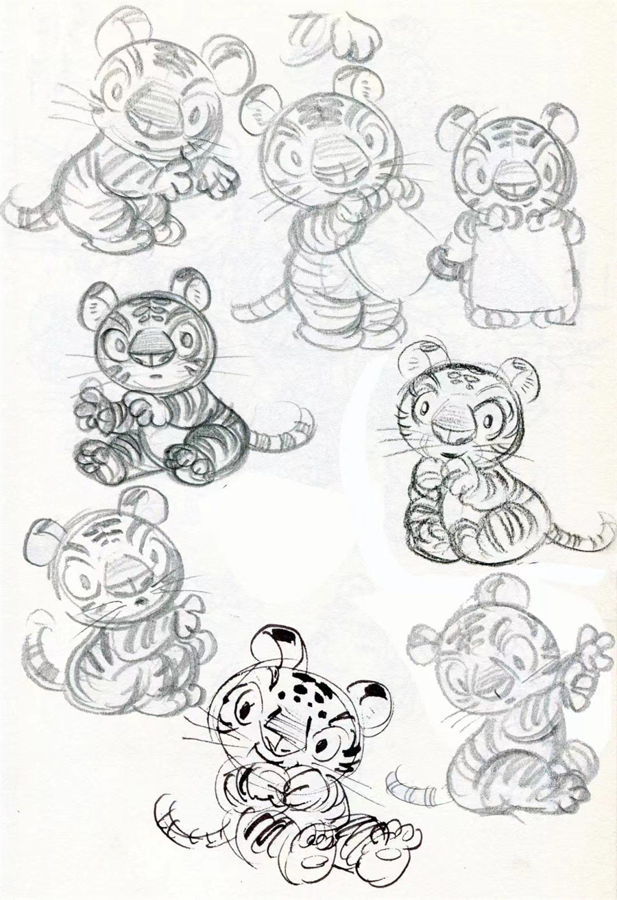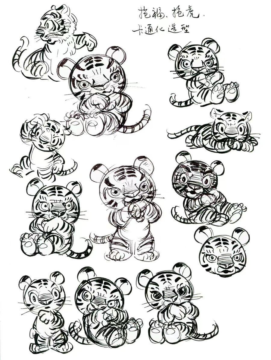 卡通风格小老虎“抱抱虎”设计草图