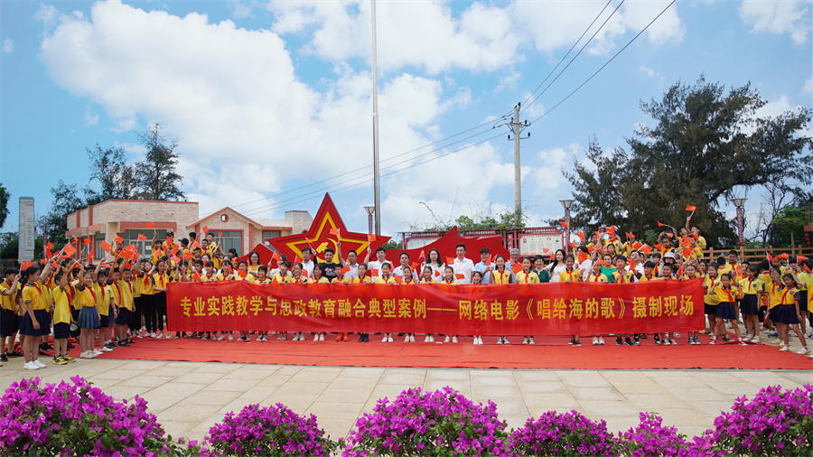此次获奖并非偶然,《唱给海的歌》从前期调研及剧本筹备到后期拍摄与制作完成,历时半年。整部影片分解成若干子项目,将这些子项目引入动画和数媒专业的《剧本创作》《影视作品创作》《视听语言》《影视包装》《动画表演》等专业核心课程中,利用涠洲岛综合实践教学平台,专业负责人带领师生共同完成电影的拍摄,老师们将教学课堂也从教室搬到了涠洲岛拍摄现场,实现了教学做的一体,通过真实项目的参与,学生们不仅提升了艺术设计的实战能力,培养了电影人应具备的基本素养,也学会了如何因地制宜,将地方的自然资源、文化资源融入到电影创作中,用电影讲好地方故事。