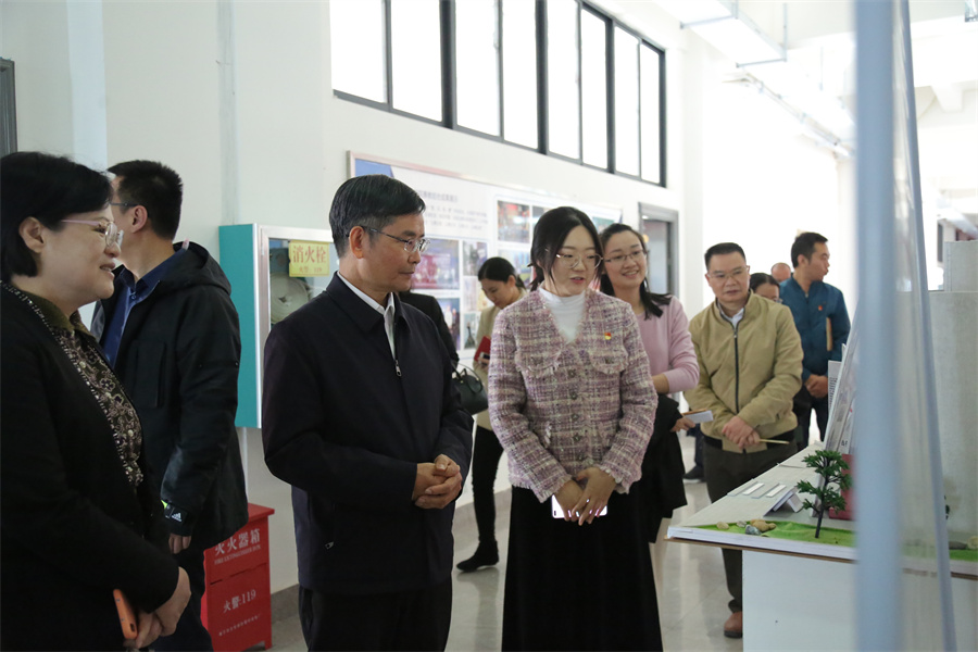 座谈会前,陈锦山一行还参观了我校美术学院水彩工作室、设计艺术学院工作室及学校三期工程建设全景,观看了设计艺术学院优秀毕业生作品走秀视频,动画与传媒学院网络电影《唱给海的歌》和三维动画《半条被子》,以及人文教育学院舞蹈表演专业学生舞蹈《踩曲姑娘》、建筑与环境艺术学院“红色元素模型展”。