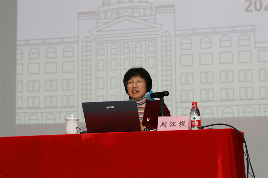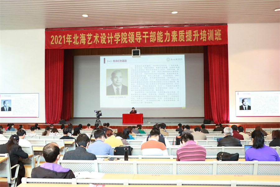 广西外国语学院党委书记周江煜以《传承红色基因 聚焦立德树人——党建领航民办高校与新时代共进》为题,从“传承红色基因,聚焦立德树人”、“牢记初心使命,坚持党建领航”、“坚定正确方向,把握时代方位”三个方面,分享了广西外国语学院在党建工作上的建设方法和显著成效,使听讲党员干部对民办高校如何抓党建有了进一步的认识和了解。讲座中,周江煜用生动例子说明学校在发展历程中始终坚持党的领导,传承红色基因,打造“服务边疆,对接东盟,把‘小’做大,把外做强”的办学特色;结合广西外国语学院实际,分享了学校完善机制体制、创建学习载体、创新思想教育推进党建工作开展的具体做法,着重介绍了“党校培训‘十个一’工程”、“课程思政‘九个一’工程”和党史学习教育的建设成果;她强调要坚定正确方向,把握时代方位,将党建思想精神贯穿于学校的办学思路和各项工作,坚持党建领航才能促进学校不断向前发展。