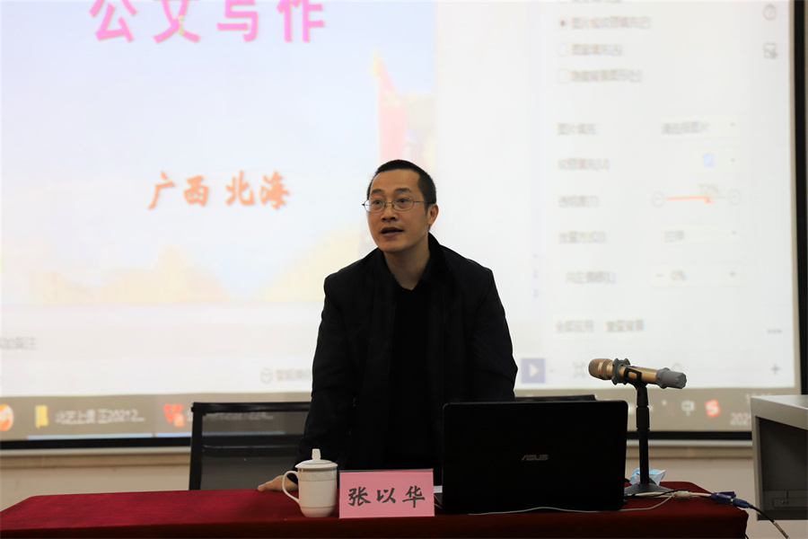12月24日,北海市人民政府副秘书长张以华和北海市委网信办应急科负责人、市互联网舆情中心副主任彭鹏飞于我校西校区伦理楼107分别开展了题为《公文写作》、《新时期的网络舆论生态与舆情引导应对策略》专题培训。