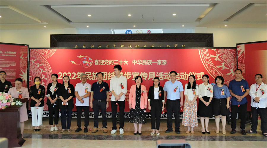 5月13日下午,北海艺术设计学院于学校西校区图书馆一楼举行“喜迎党的二十大 中华民族一家亲——2022年民族团结进步宣传月活动”启动仪式,并同步开展“醉美民族风,八桂嘉年华”校园游园活动。北海市市委统战部宗教工作科科长邓秋莹,北海艺术设计学院党委书记张阳,校董事长郑念贻,副校长刘朝雄,各单位部门负责人及学生代表参加启动仪式。启动仪式由校党委副书记韦静月主持。