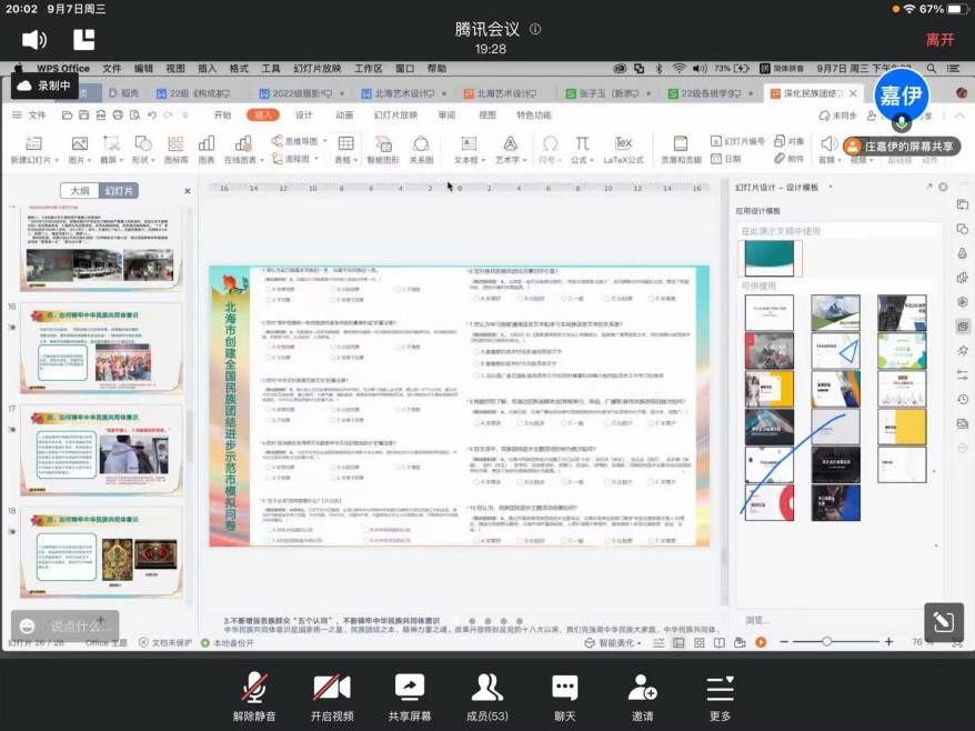 当前北海市正在创建全国民族团结进步示范市,我校是北海市民族团结进步创建示范学校和示范基地,需要为北海市迎接全国民族团结进步示范市检查工作贡献北艺力量。深刻认识维护国家统一和民族团结是我国各族人民的最高利益。深刻认识各民族交融汇聚成多元一体中华民族的历史。积极培育和践行社会主义核心价值观。大力弘扬中华优秀文化。牢固树立法治意识。