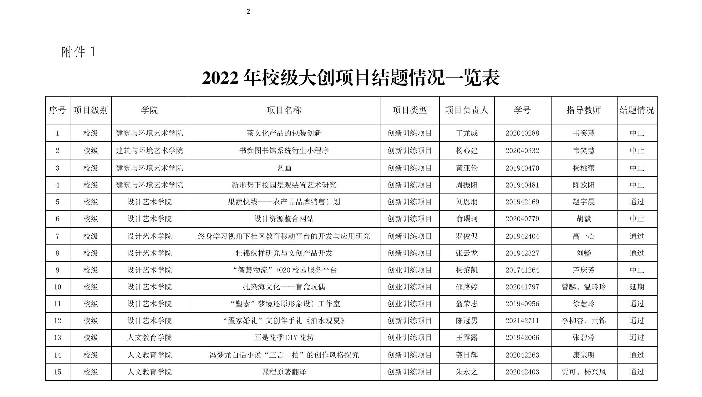 北艺创新〔2022〕24号关于公布我校2022年校级大学生创新创业训练计划项目结题验收情况的通知