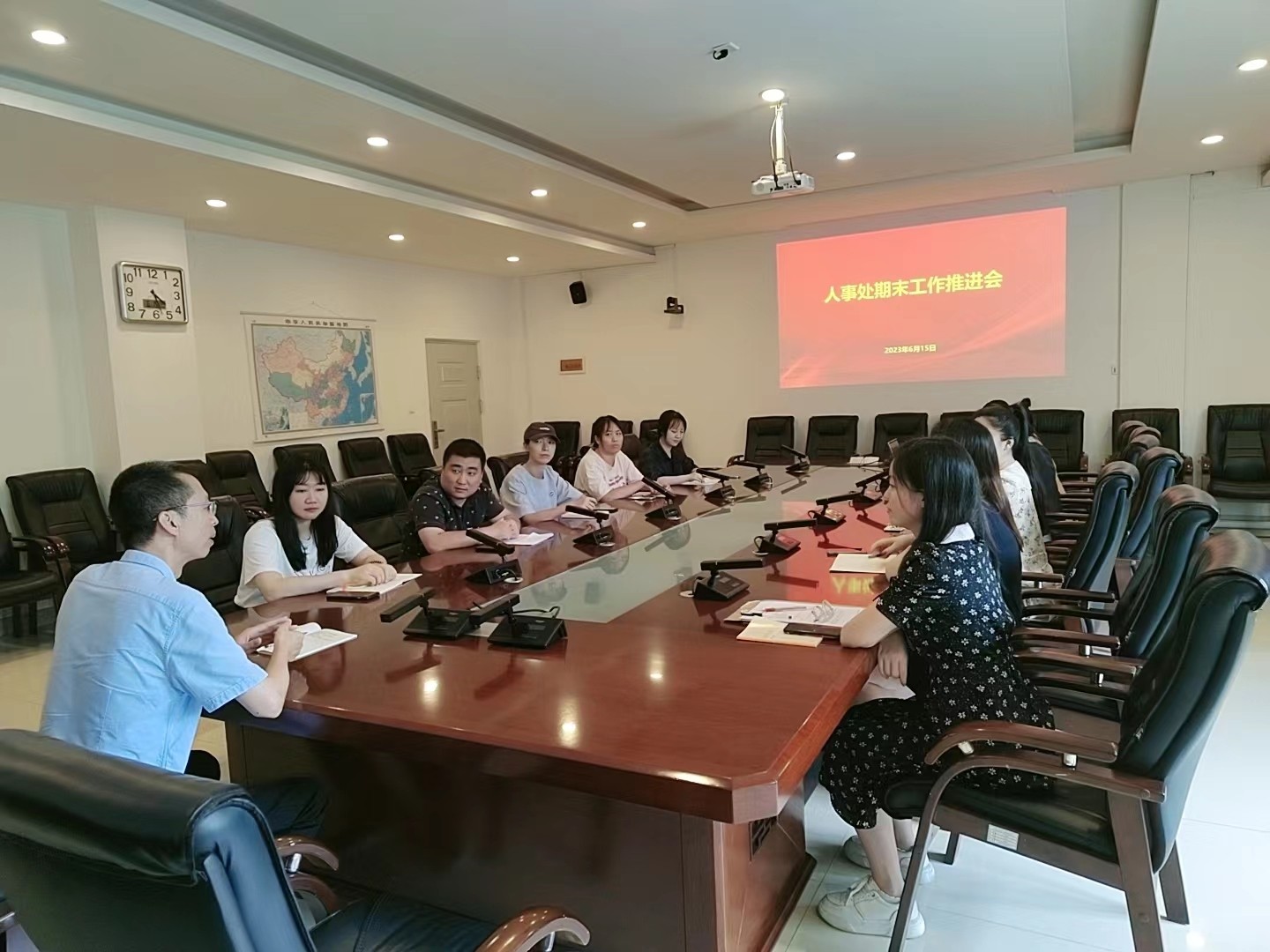 6月15日下午,人事处在行政楼212会议室召开期末工作推进会,分管副校长黄侃明、人事处全体人员参会,会议由人事处处长屈志鑫主持。
