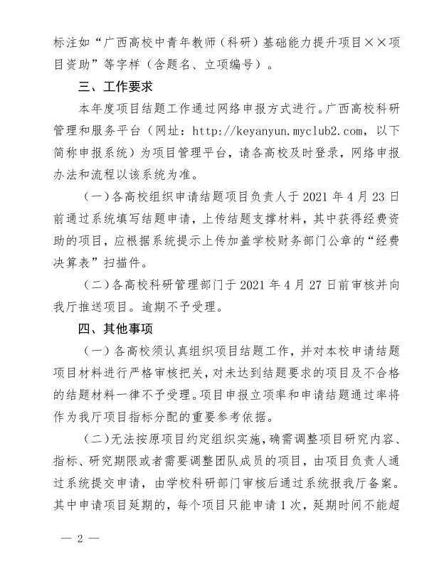 自治区教育厅关于做好2021年广西高校中青年教师科研基础能力提升项目结题工作的通知