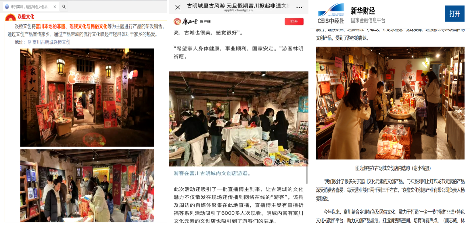 线下在古明城设立总店并进驻景区,线上通过新媒体推广文化故事,构建多维度营销体系。门神系列、"上灯炸龙节" 元素产品单日最高营业额达 3000 元,总销售额近 10 万元。计划与广旅富兴公司、秀水民族写生基地等知名企业开展战略合作,为产品的进一步推广和销售搭建了更广阔的平台。通过 "非遗 + 旅游" 模式提升文化体验附加值,带动景区客流量增长 20%。