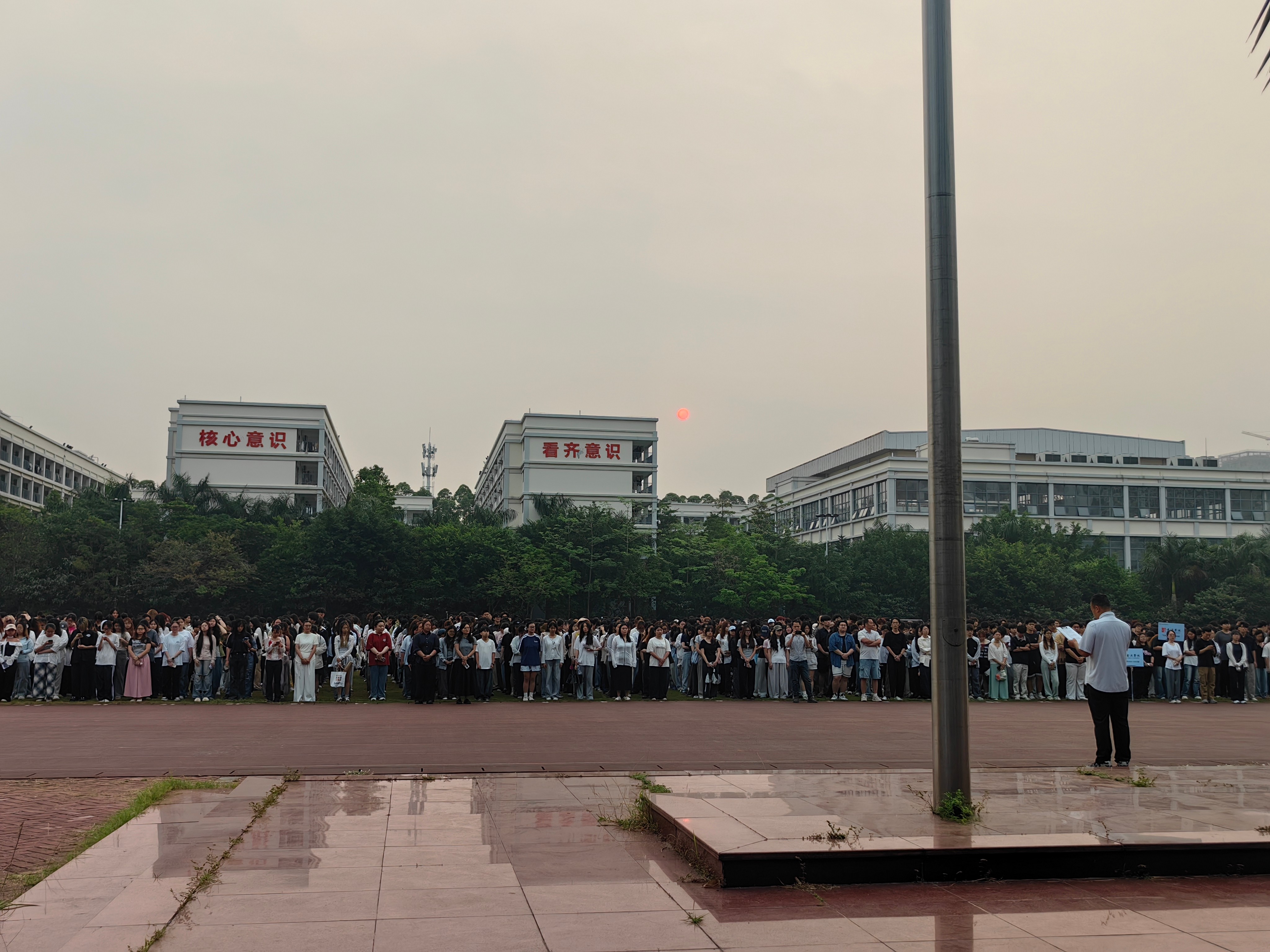 4月13日清晨,我校举行升旗仪式,师生齐聚操场,面向国旗肃立致敬。