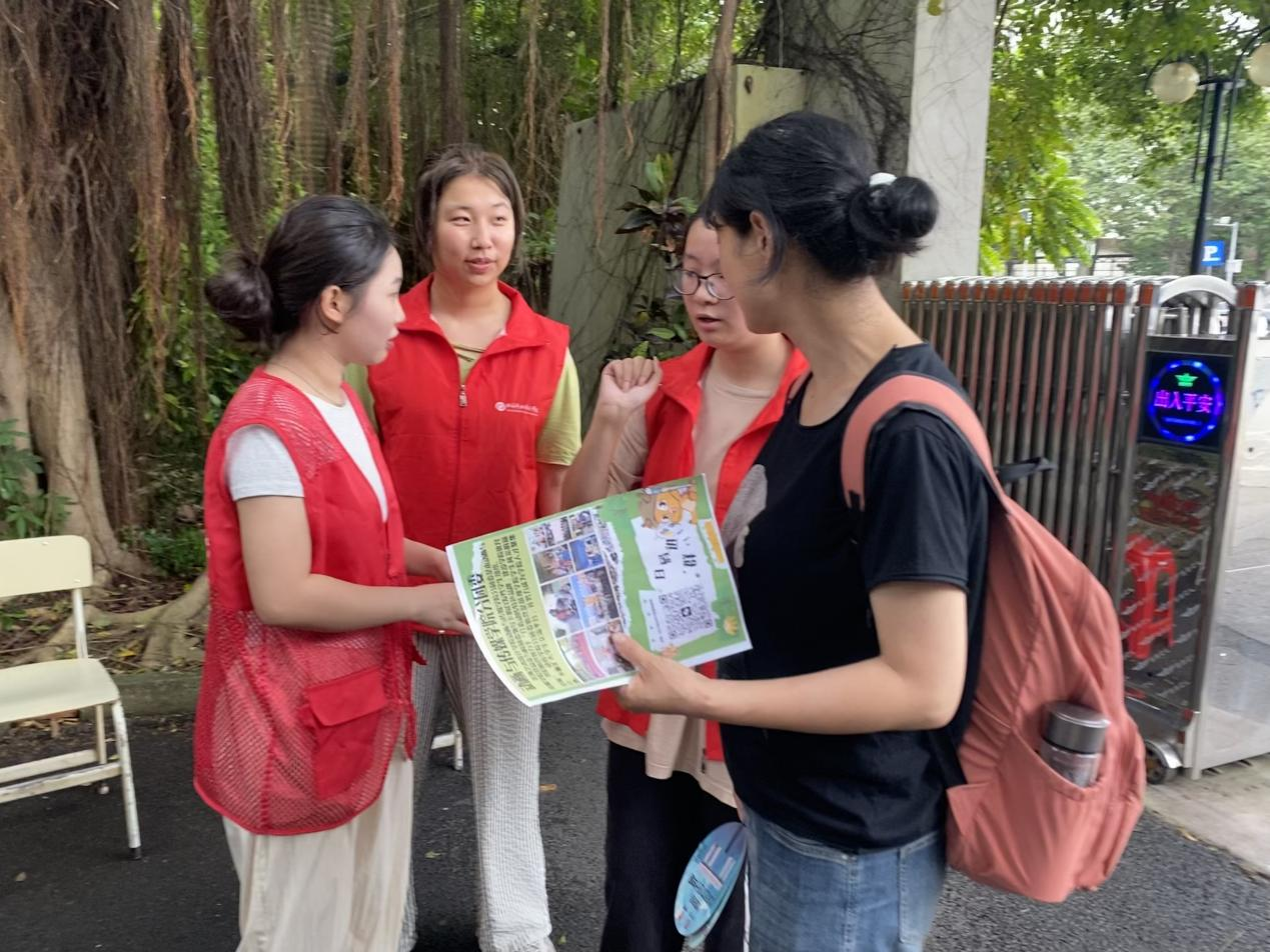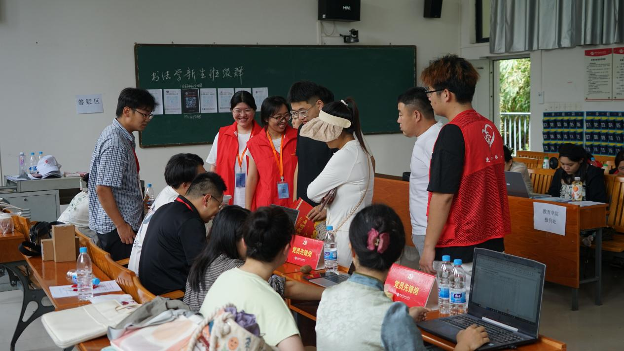 (志愿者在学校接待新生)