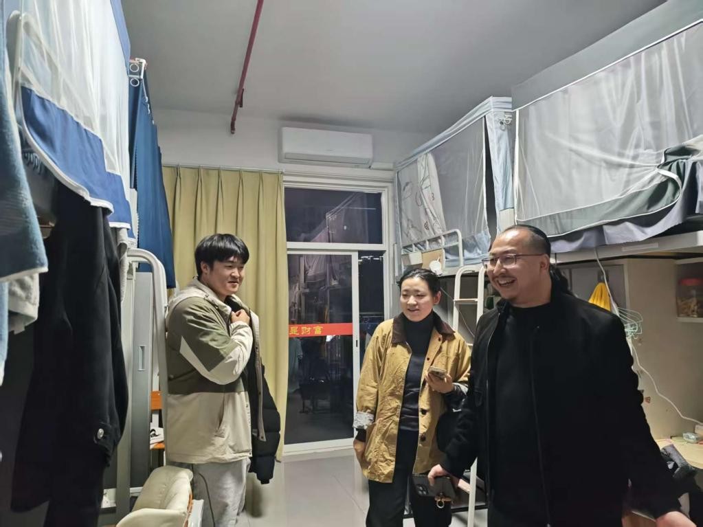 走访期间,学院领导与辅导员们逐一走进学生宿舍,与同学们面对面亲切交谈,细致询问大家的住宿适应情况、学习进度以及生活中遇到的困难。叮嘱同学们要合理规划作息时间,平衡好课堂学习与课余生活的关系,既要保持积极进取的学习状态,也要养成规律作息的健康习惯。