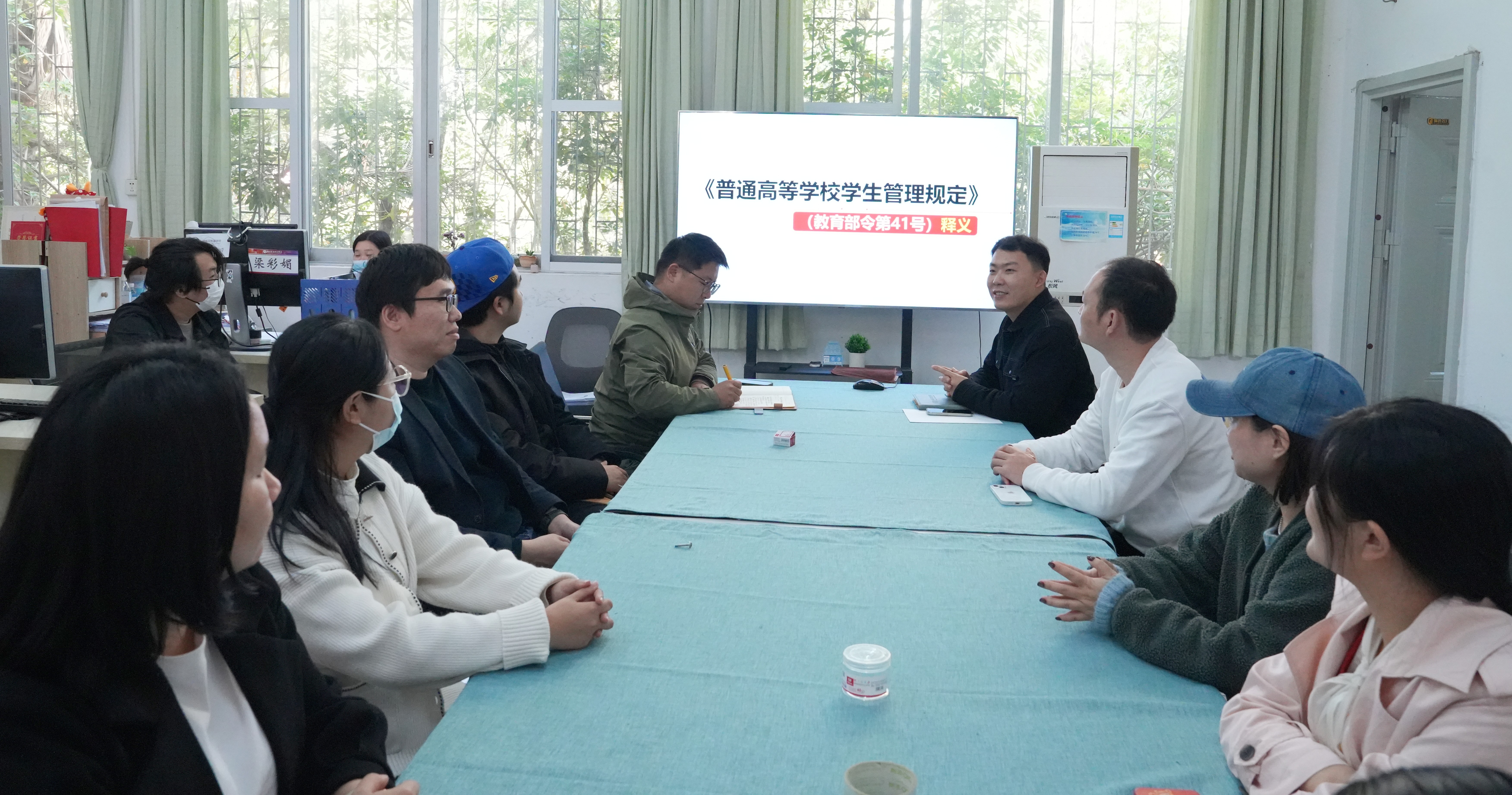 为深入贯彻教育部令第41号文件精神,切实规范学校入学管理和学籍注册工作,维护学生合法权益与教育公平公正,动画与传媒学院学工办于近期组织全体辅导员开展了《普通高等学校学生管理规定》(教育部令第41号)的学习活动。