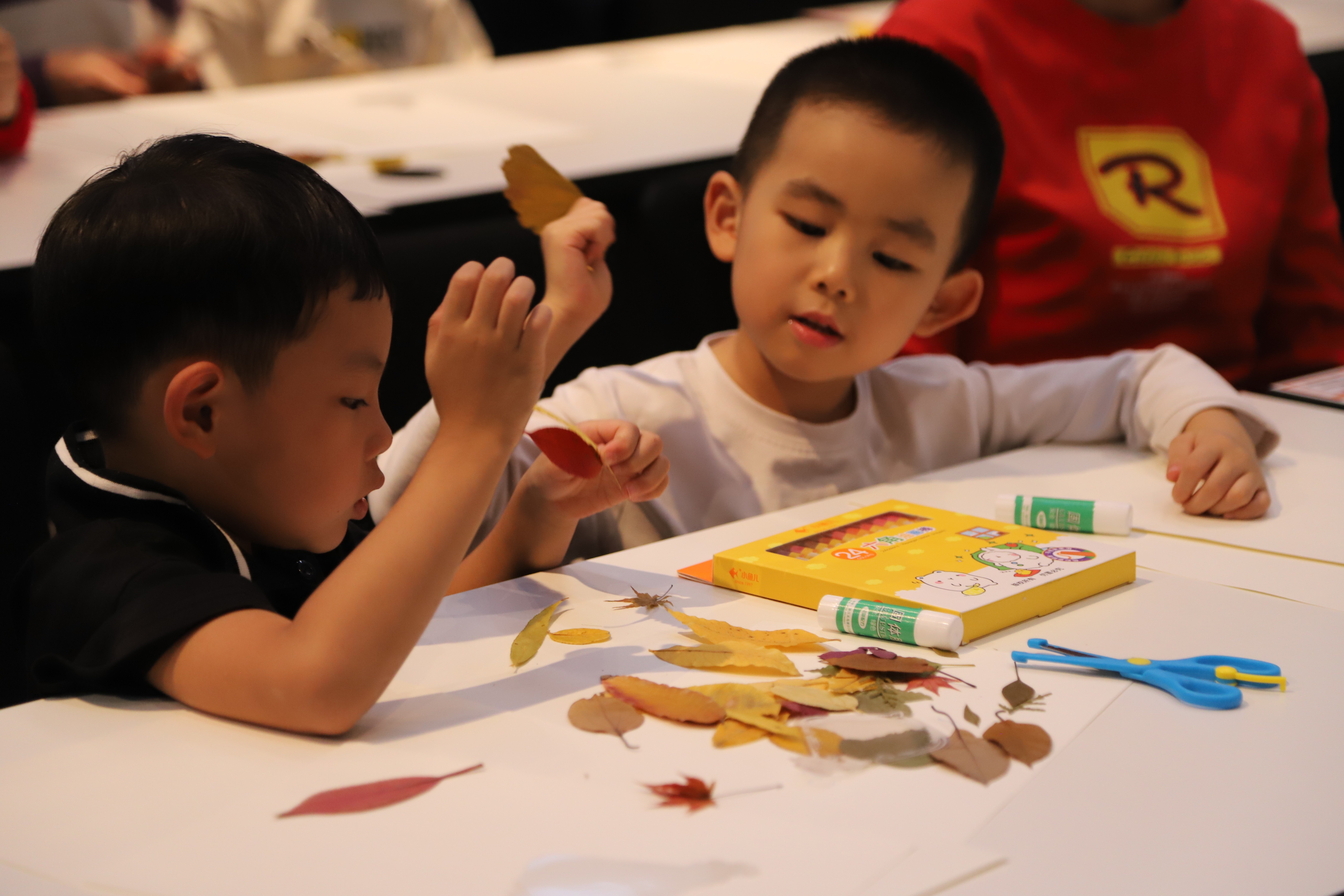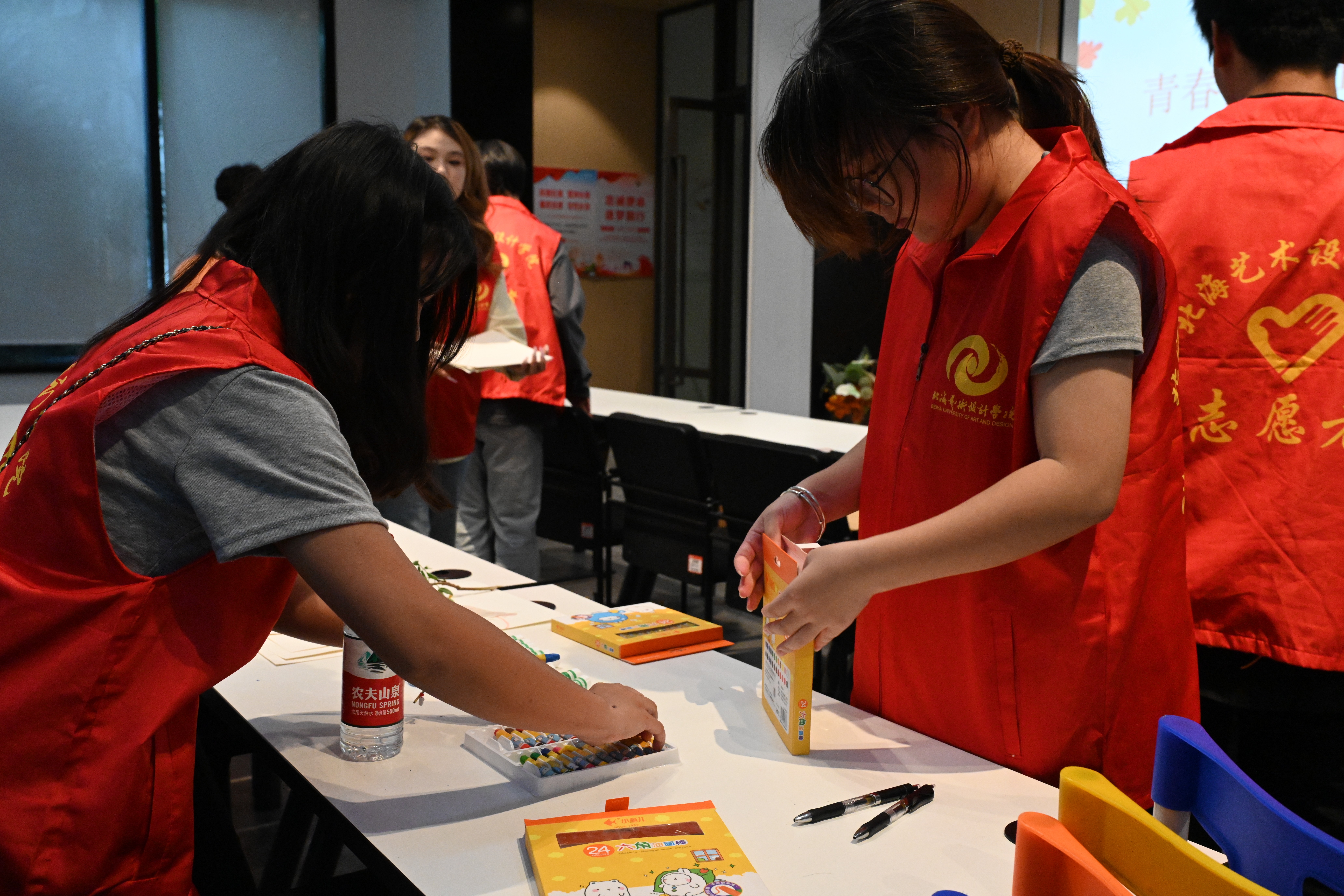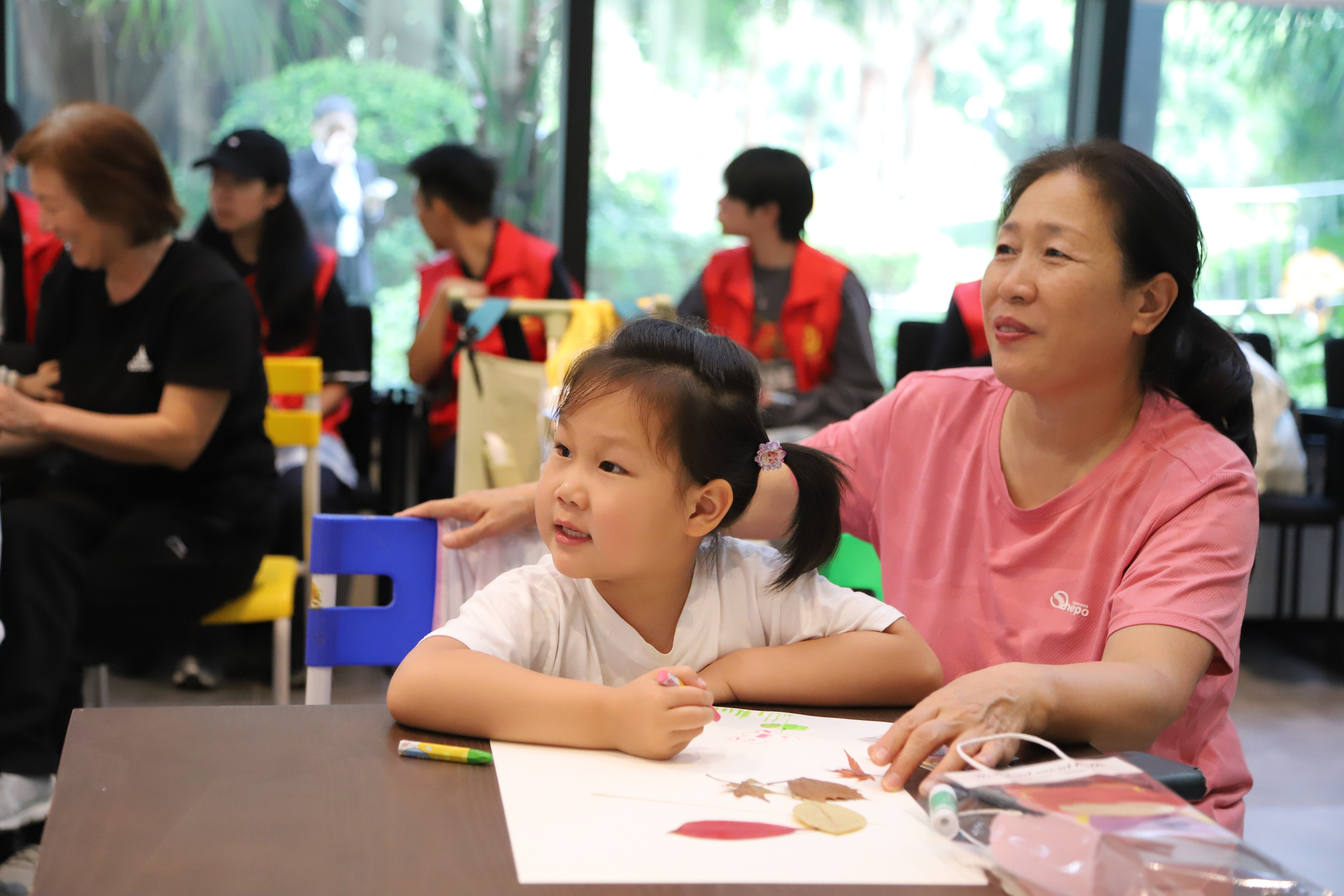 “亲子绘画”环节在社区共享会议室温馨开启。传媒艺术学院的志愿者们充分发挥专业特长,化身“艺术导师”,耐心引导小朋友们展开想象,在洁白的画纸上共同描绘秋天的故事。以“我眼中的秋天”为主题,孩子们在志愿者一对一陪伴下,挥洒童真色彩——金黄的落叶、高远的蓝天、欢笑的家人、嬉戏的身影……一幅幅充满生命力的图景在画笔下渐次绽放。原本静谧的会议室,化作一片流动的色彩海洋,洋溢着童趣与温暖的创作气息。