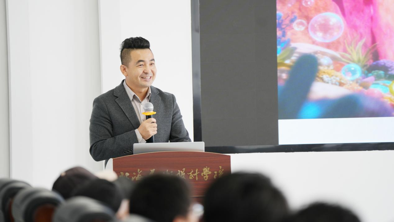 研讨会由剧本编剧邢舒格主持。北海艺术设计学院副校长陶立阳教授首先致辞。他提到《鲸灵守护队》是学校在AIGC时代推动动画专业教学与创作融合的一次重要尝试,期待项目在叙事创新与技术应用上形成可推广的经验,为动画人才培养提供新路径。