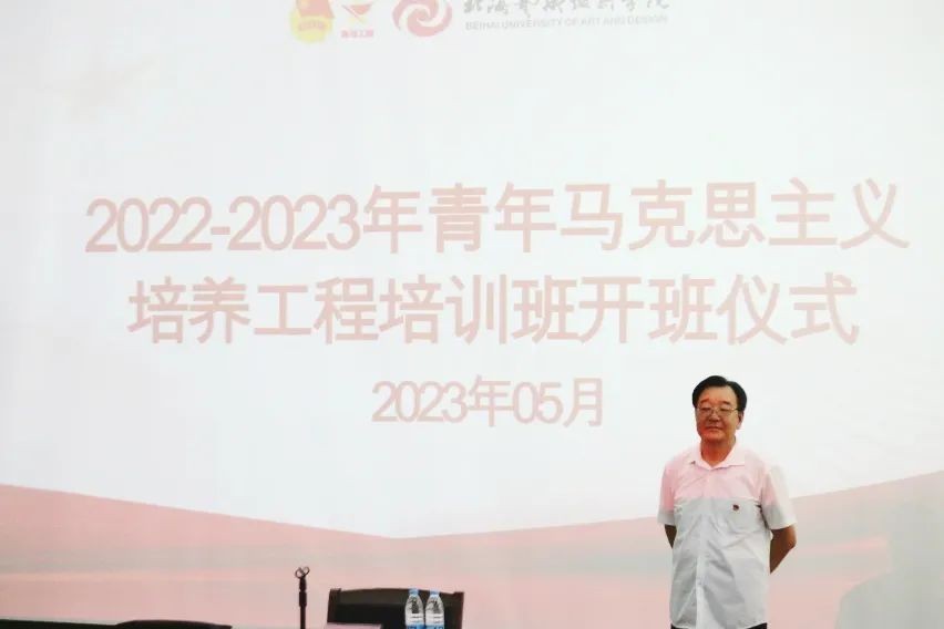 为深入学习宣传贯彻党的二十大精神和习近平总书记关于青年工作的重要论述,用马克思主义的立场观点方法武装头脑、指导实践、推动工作。加强党性修养,筑牢信仰之基、补足精神之钙、把稳思想之舵。培养新时代政治素质坚定、理想信念崇高、实践能力过硬的大学生骨干。5月28日,北海艺术设计学院青马工程培训班开班仪式在伦理楼107举行,参加本次开班仪式的领导有我校马克思主义学院副教授刘兴仁、团委副书记宋慧敏,我校148名青马工程培训班学员参会。