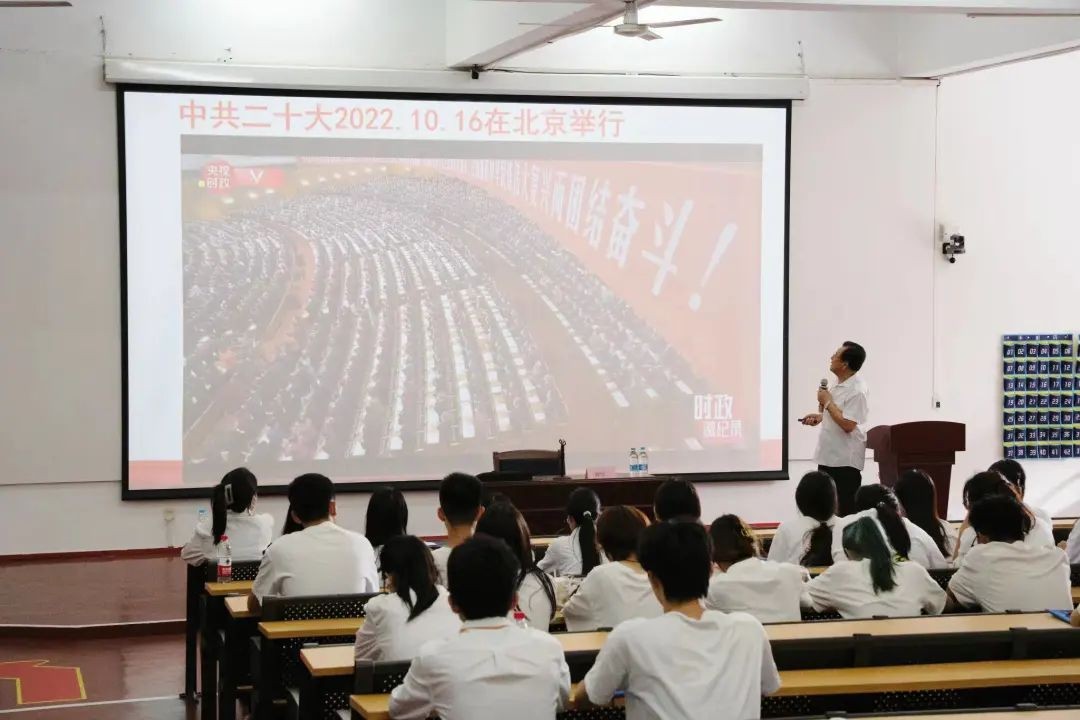 在开班培训中,我校马克思主义学院副教授刘兴仁老师为青马工程培训班学员带来了《二十大报告主要内容解读》的专题内容。他指出,我们要高举中国特色社会主义伟大旗帜,全面贯彻新时代中国特色社会主义思想,同时强调作为新时代大学生干部,应具备自信自强、守正创新、踔厉奋发,勇毅前行的勇气