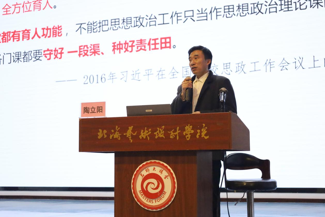培训会上,陶立阳教授以“全面推进高校课程思政高质量建设”为题,从思政教育的重要性、高校课程思政教学大纲和教学内容、课程思政建设的案例与经验三方面展开培训内容。解读了《教育部等八部门关于加快构建高校思想政治工作体系的意见》《高等学校课程思政建设指导纲要》,指出了目前学校课程思政建设存在的认知偏差等问题。以高校课程思政教学大纲和教学内容作为切入点,提出课程思政教学的基本原则和方法,教学内容的科学性和时代性,教学过程的启发性与互动性,评价方式的多样性与综合性。同时,强调了全面推进课程思政建设,教师是关键,广大教师应进一步强化育人意识,找准育人角度,提升育人能力,确保课程思政建设落地落实、见功见效。鼓励全体教师争做学生为学、为事、为人示范的“大先生”。