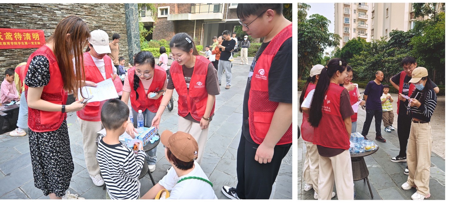 本次活动由人文教育学院党员师生以及建环学院部分学生志愿者共同参与,通过发挥师生的专业特长,以手绘风筝和知识问答的形式,向社区居民讲解和宣传传统节日清明节的知识和文化,营造社区文化氛围,提高居民文化自信,培养居民爱国主义情怀。
