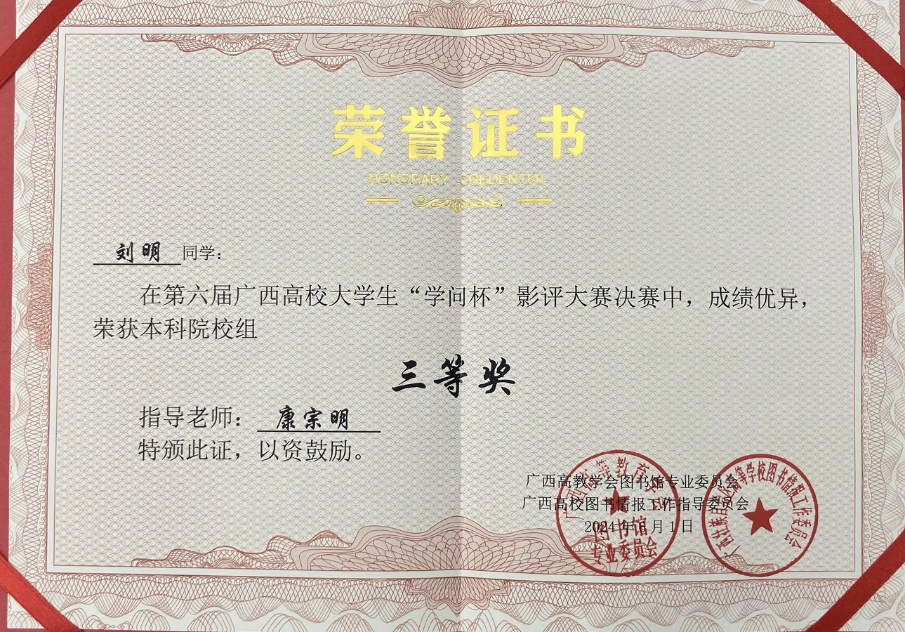 我院学生在广西高校大学生“学问杯”影评大赛中斩获三等奖