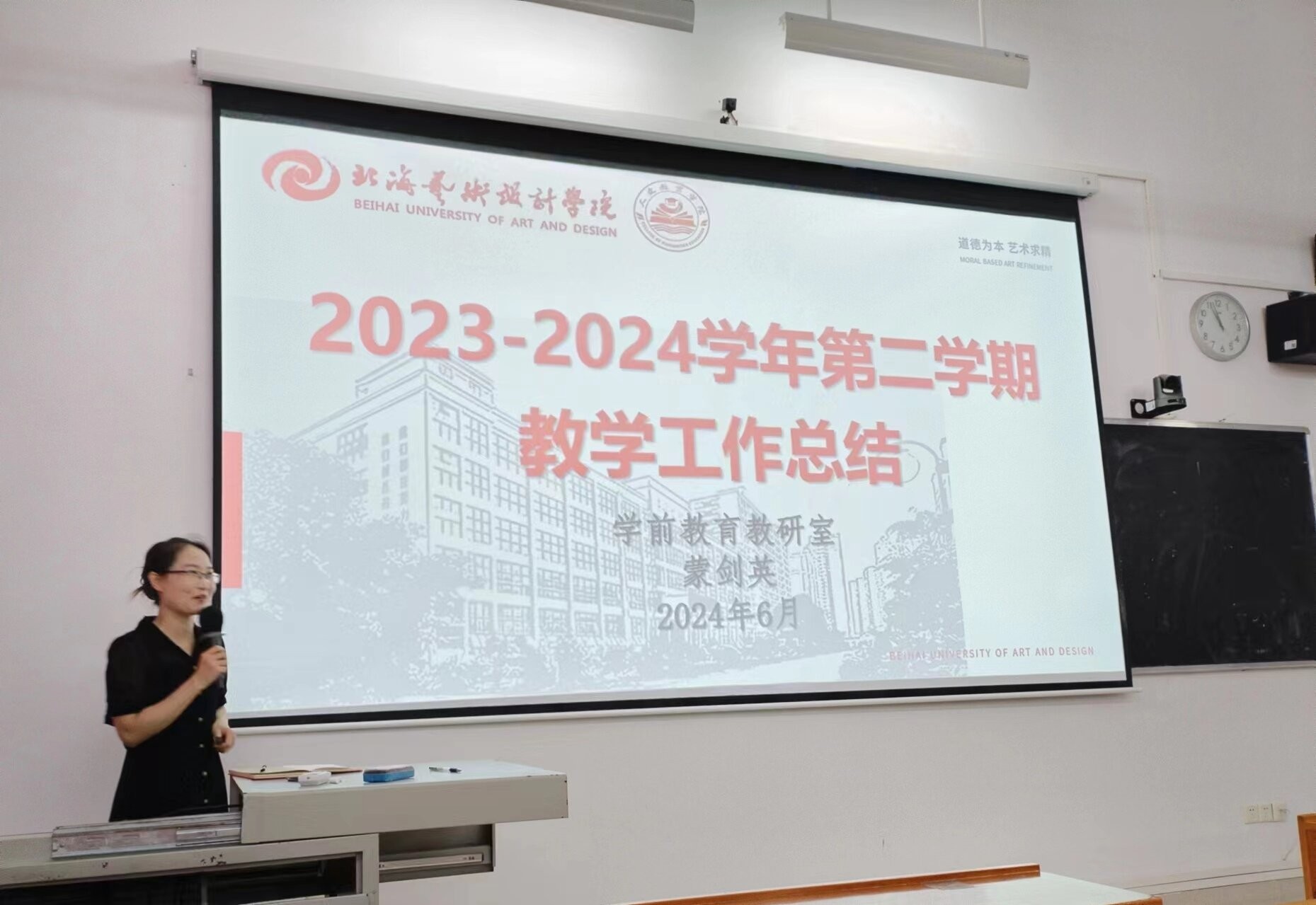 最后,分管校领导王斌总督学对我院各位教师寄予希望,王总督学指出,教育事业关乎人才培养、科学发展和文化传承各项工作,希望每位教师都能够认清形势,准确定位,扎根北艺,建设北艺,共同展望学校未来愿景,成为高水平的高校教师。