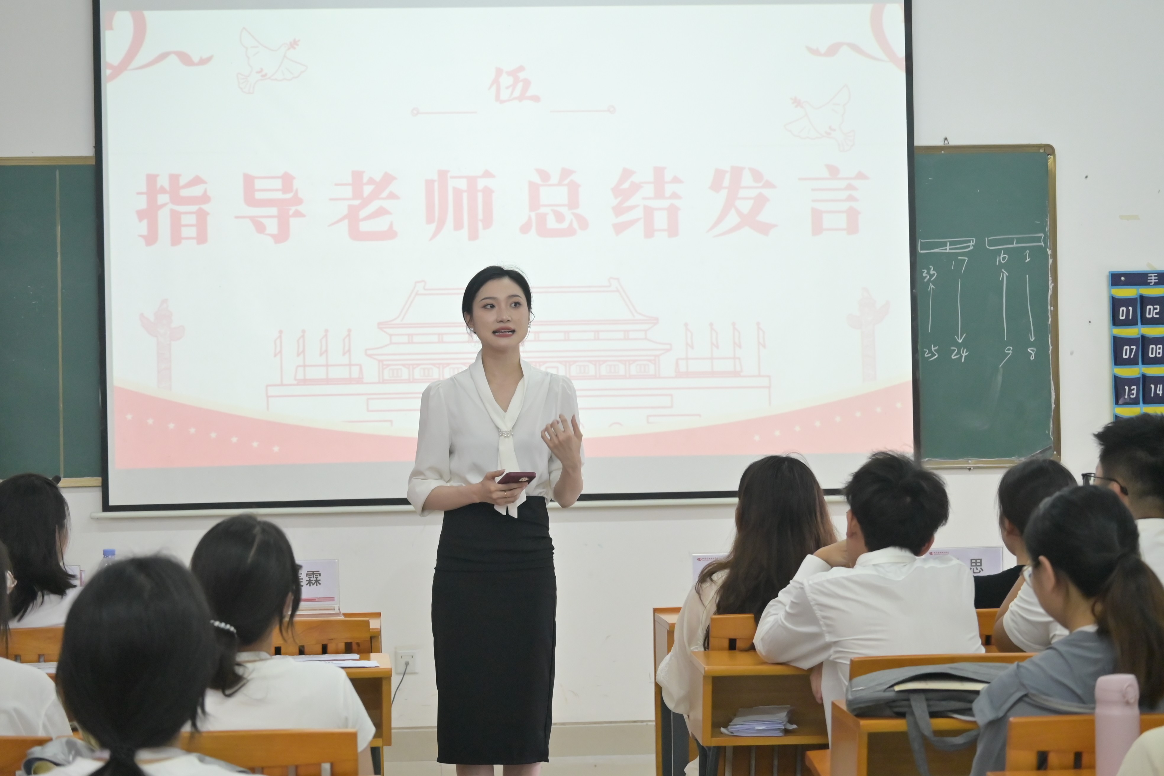 大会第五项议程是团总支指导老师陈美霖总结发言。陈老师肯定了团总支干部们过去一年的工作成绩,感谢大家的付出。同时,她从工作安排、机制建设和人员协作等方面分析了现存问题并指明改进方向。最后,她对未来工作提出建议:建立透明化反馈机制、推行“老带新”模式、强化自身建设、优化工作分配,希望大家认真思考、积极落实,推动团总支工作再上新台阶。